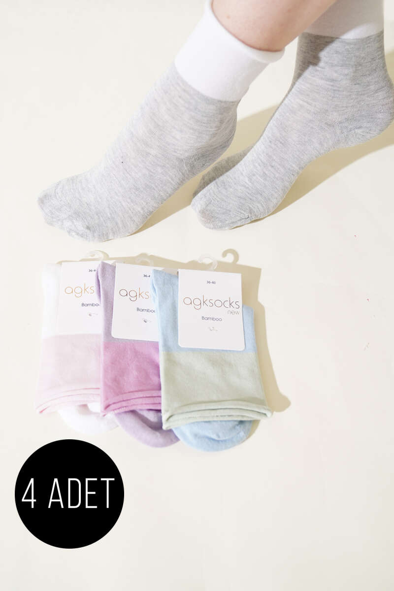 Bayan 4'lü Çift Renkli Bambu Soket Çorap Asorti 1