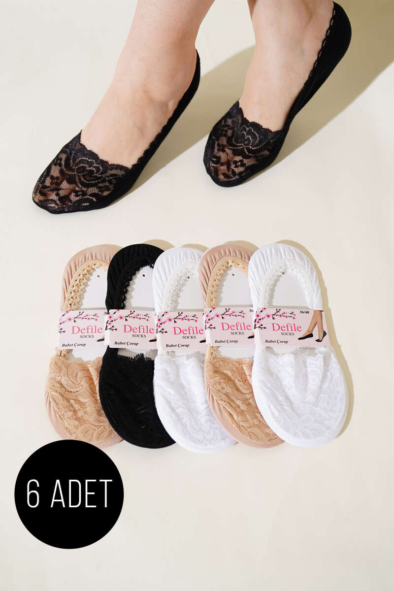 Bayan 6'lı Dantel Babet Çorap Asorti 8