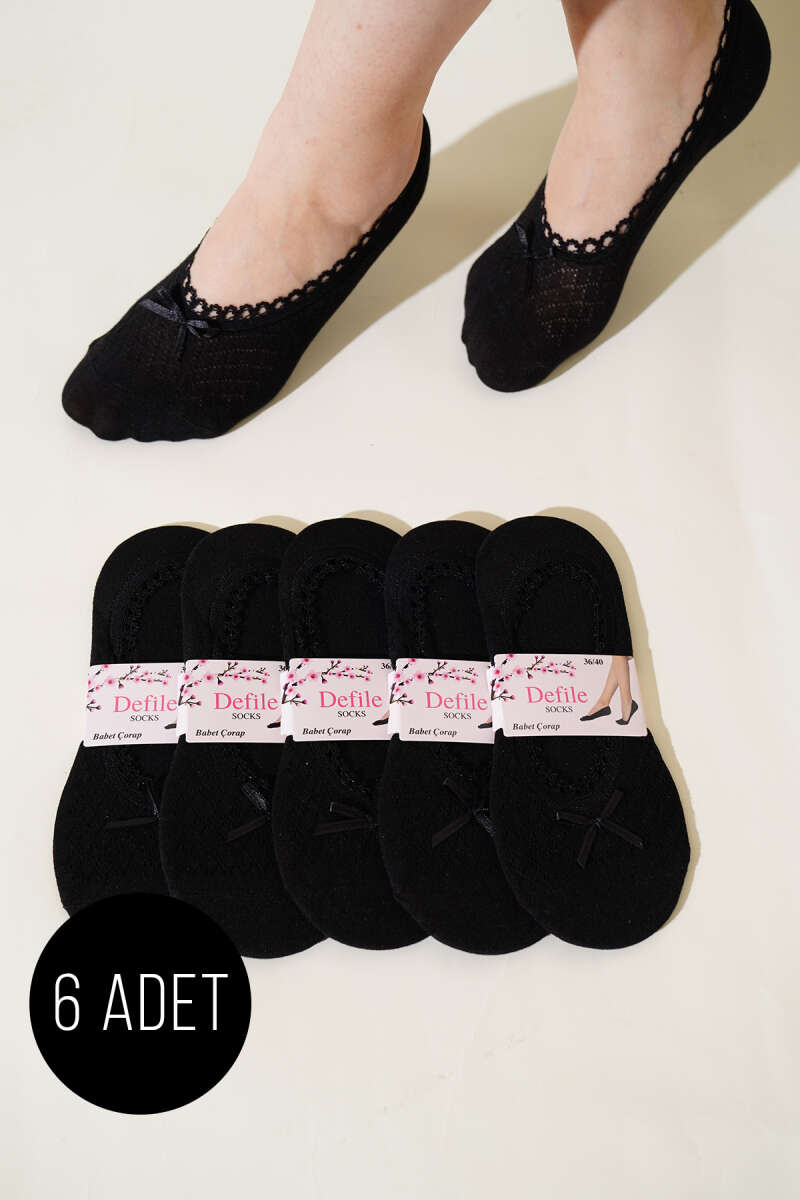 Bayan 6'lı Dantel Babet Çorap Siyah