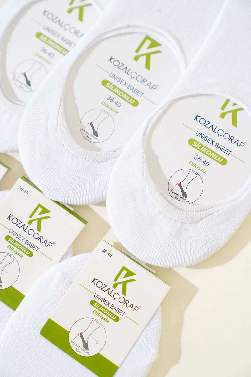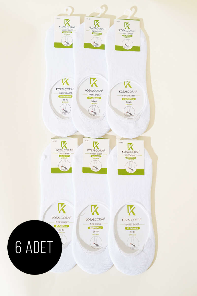 Bayan 6'lı Silikonlu Penye Babet Çorap Beyaz