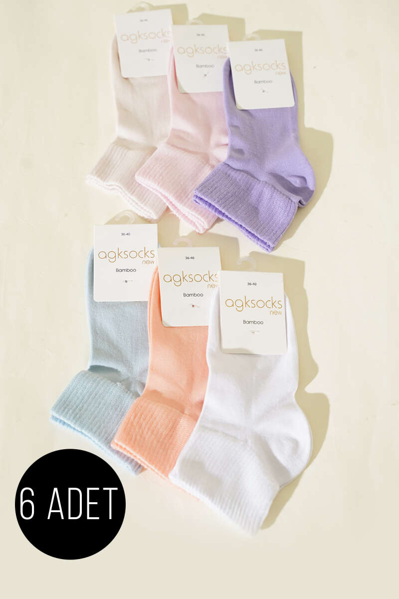 Bayan 6'lı Sport Lastik Kısa Konç Çorap Asorti 3