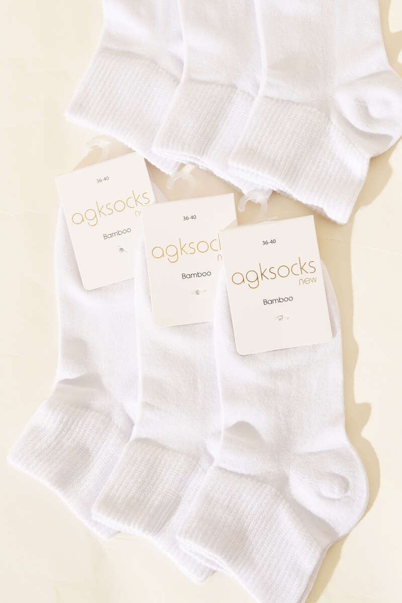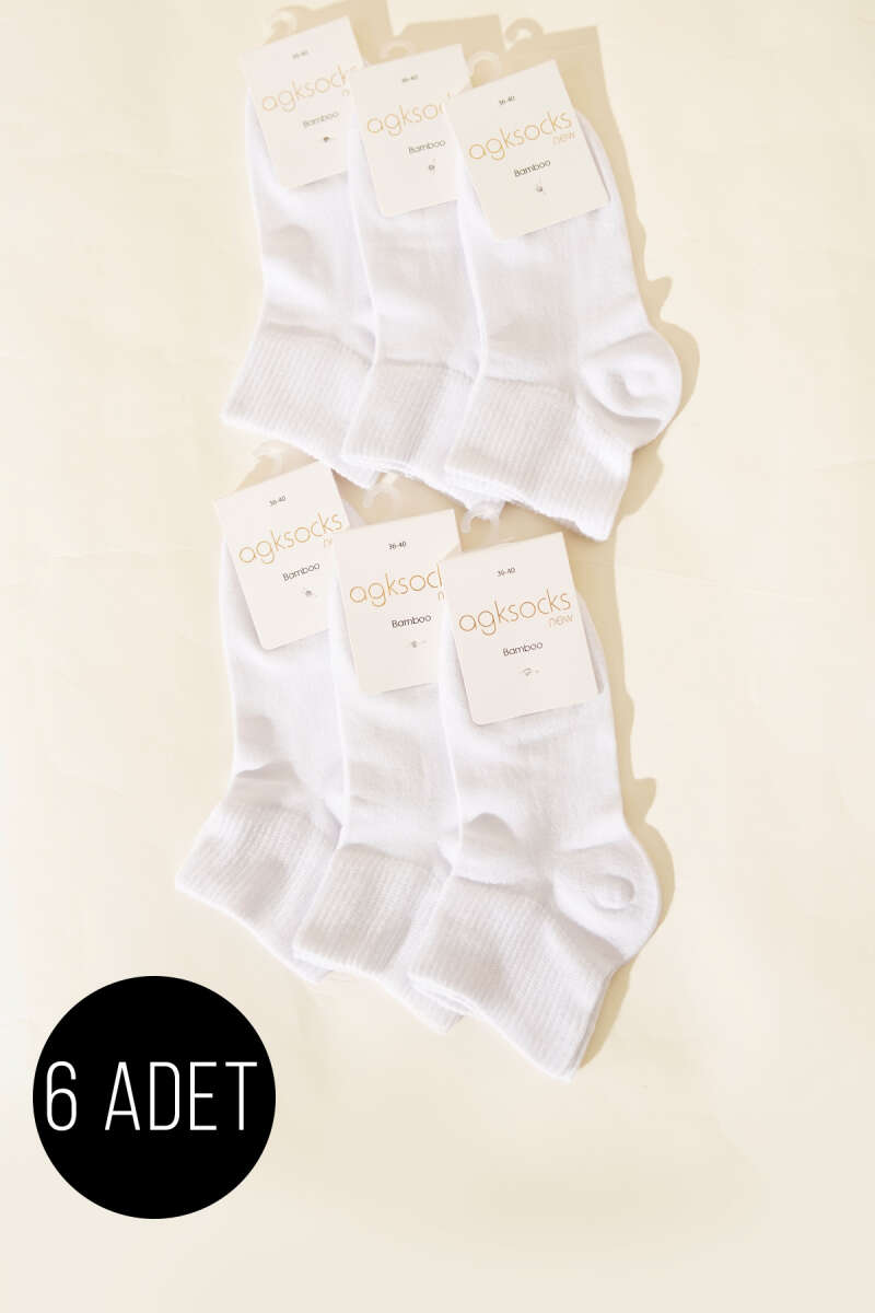 Bayan 6'lı Sport Lastik Kısa Konç Çorap Beyaz