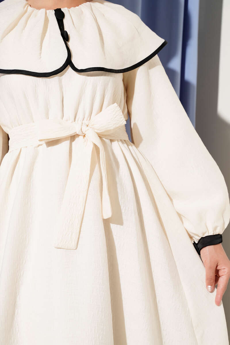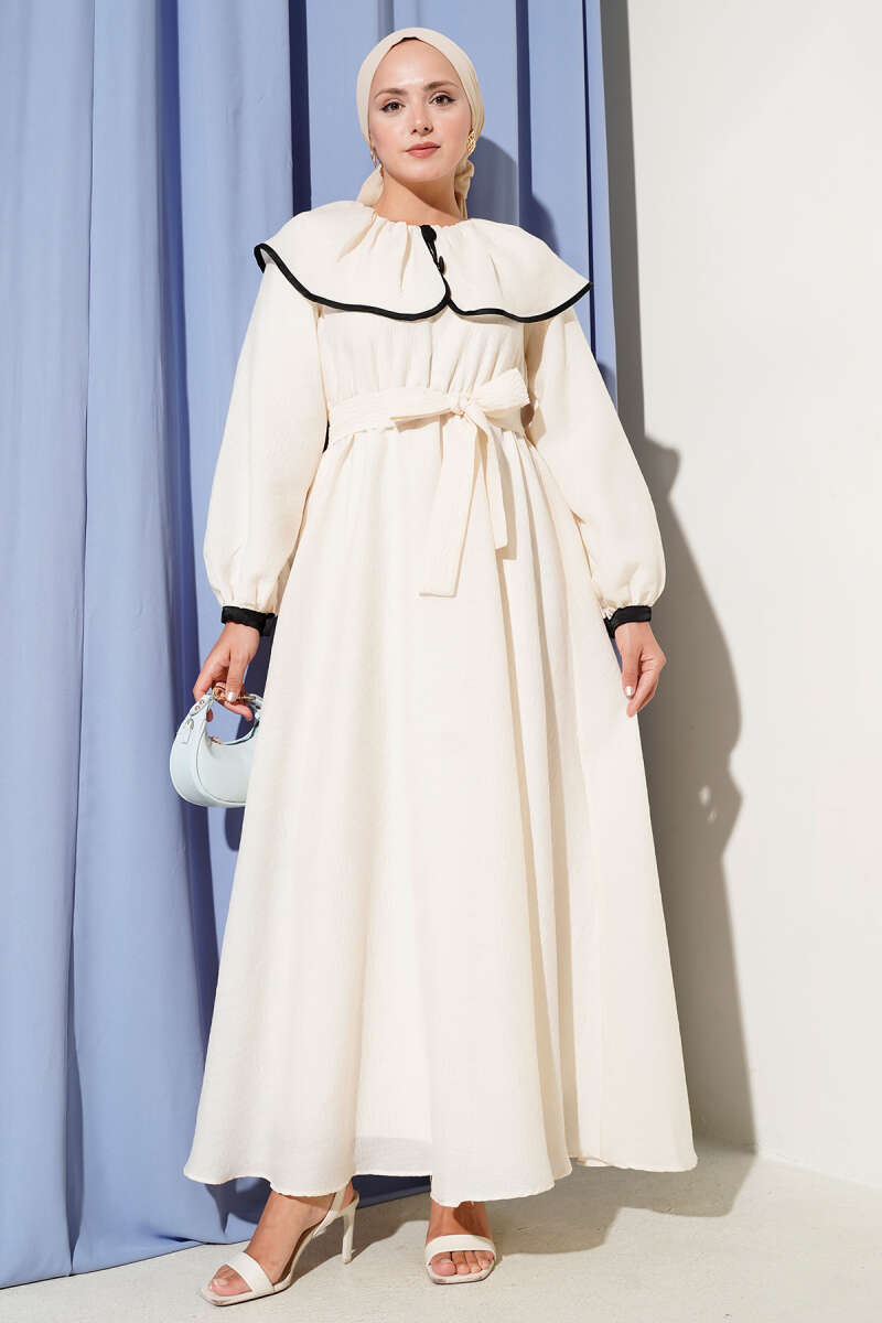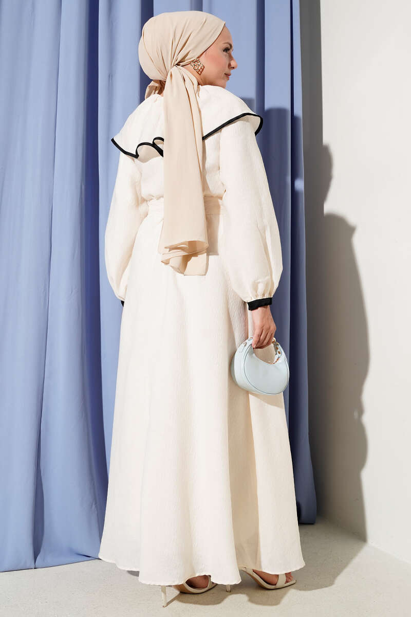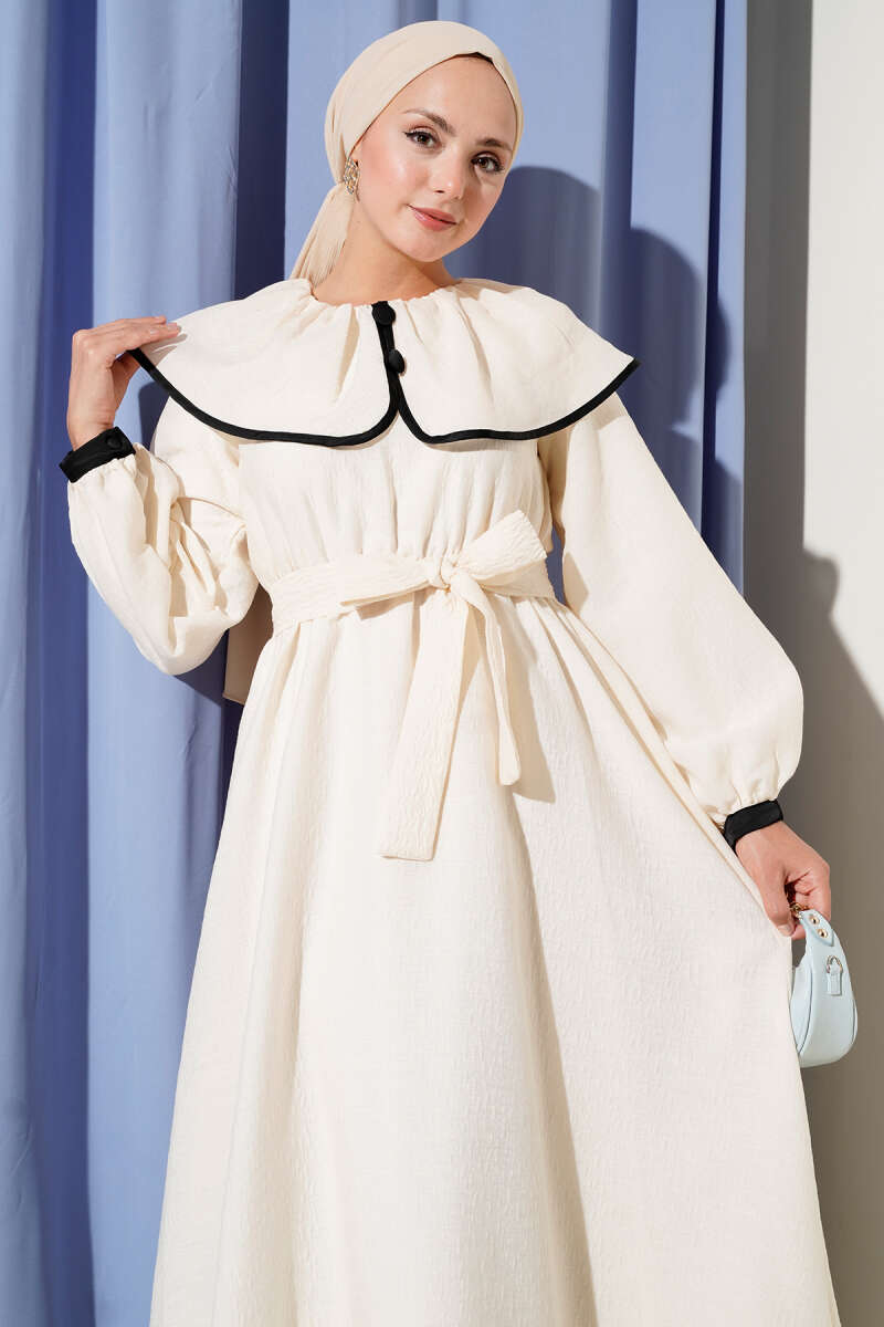 Boydan Düğmeli Kemerli Tensel Elbise Taş