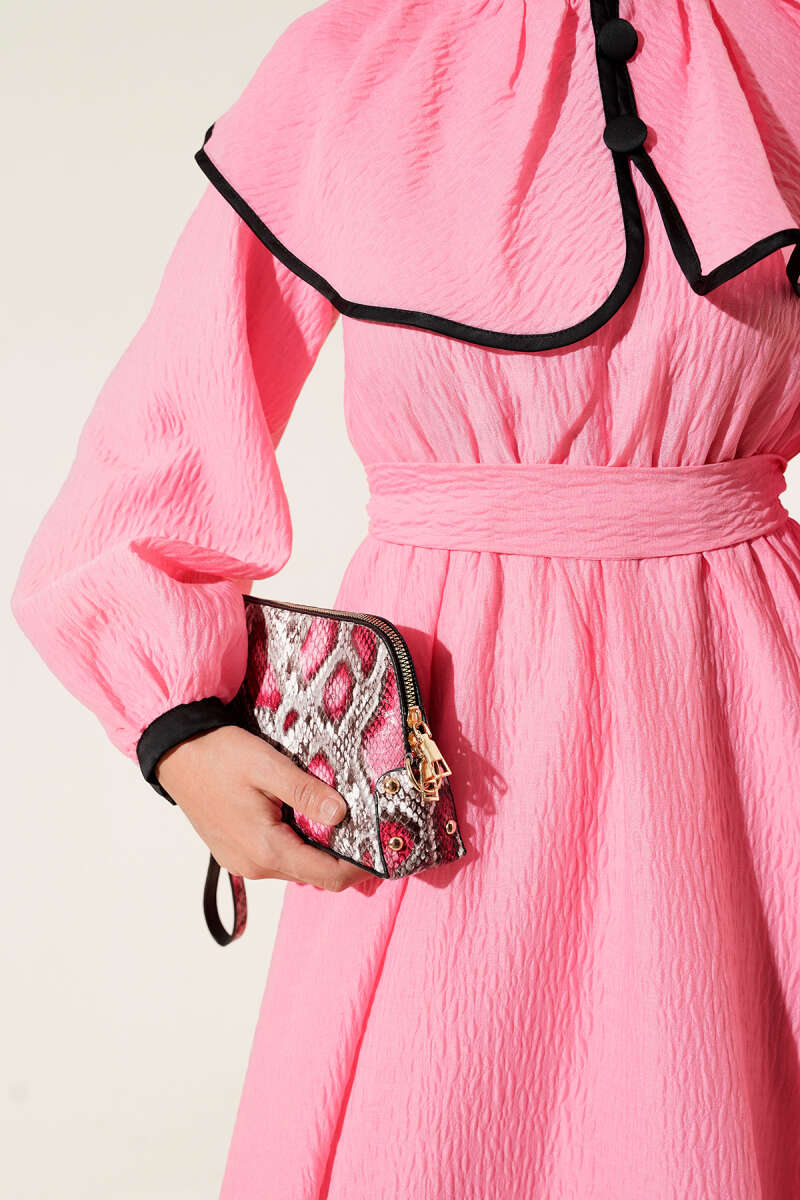 Scuba Pens Detaylı Kemerli Elbise Vizon