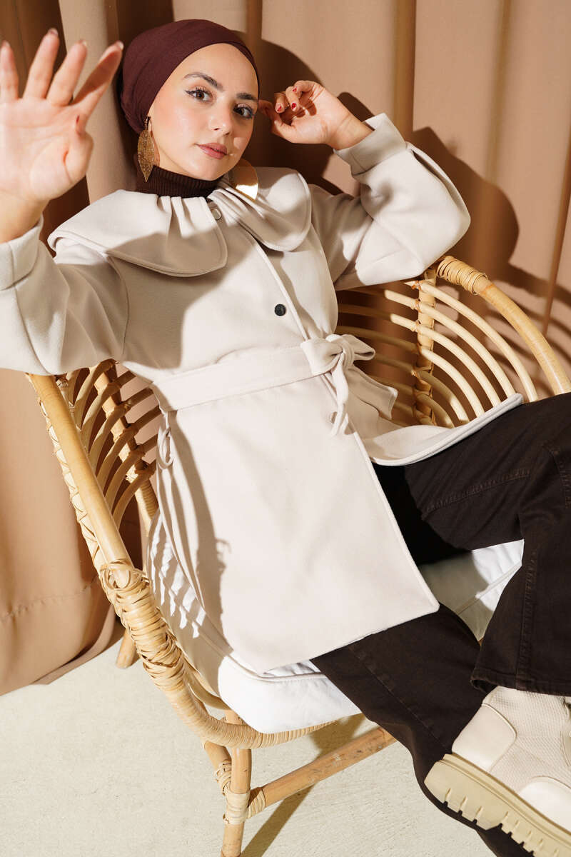 Bebe Yaka Detaylı Kaşe Kaban Bej