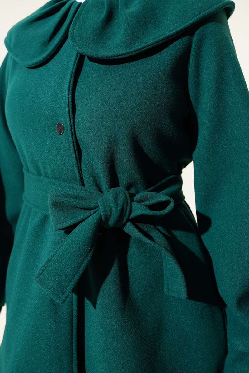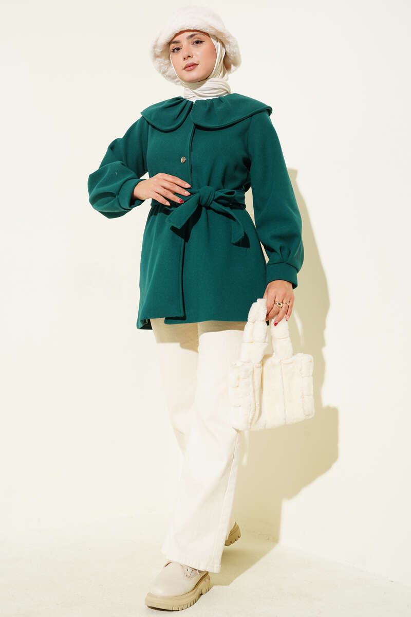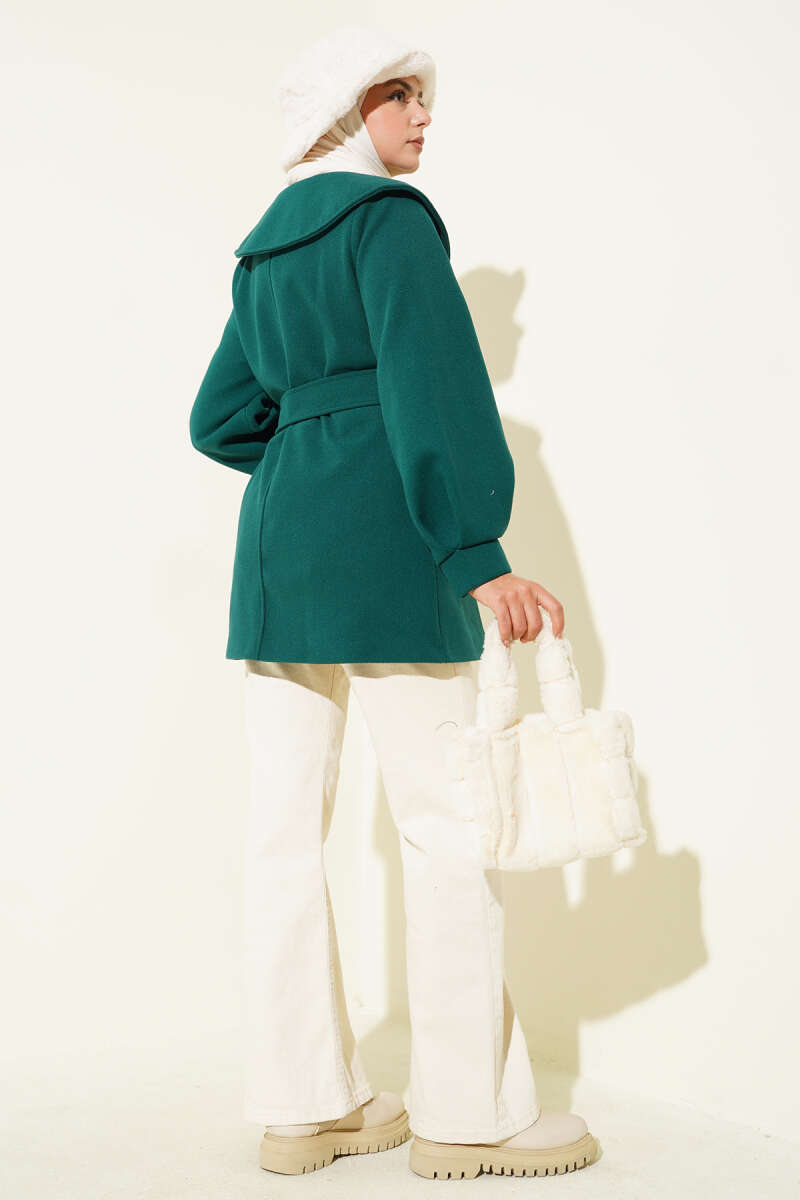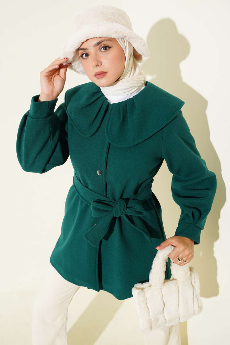 Bebe Yaka Detaylı Kaşe Kaban Zümrüt