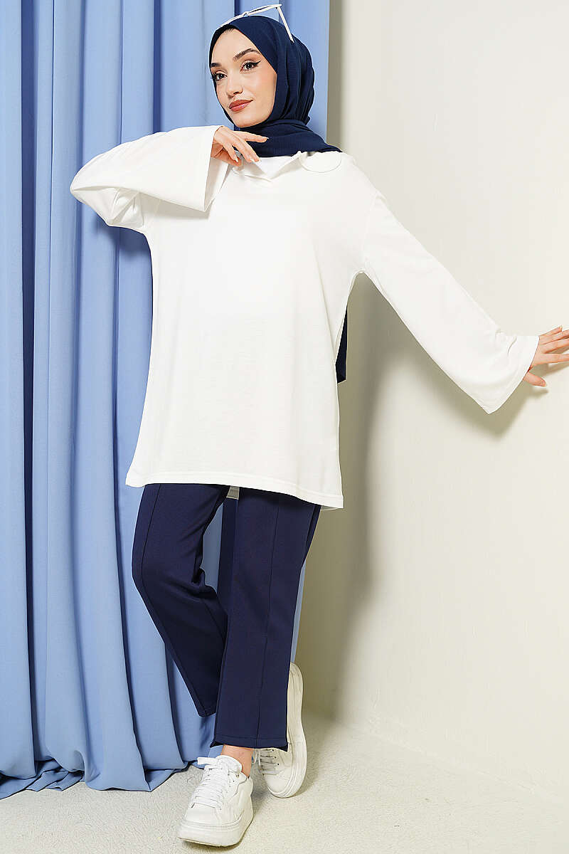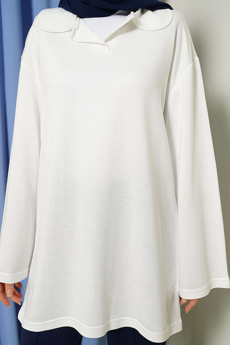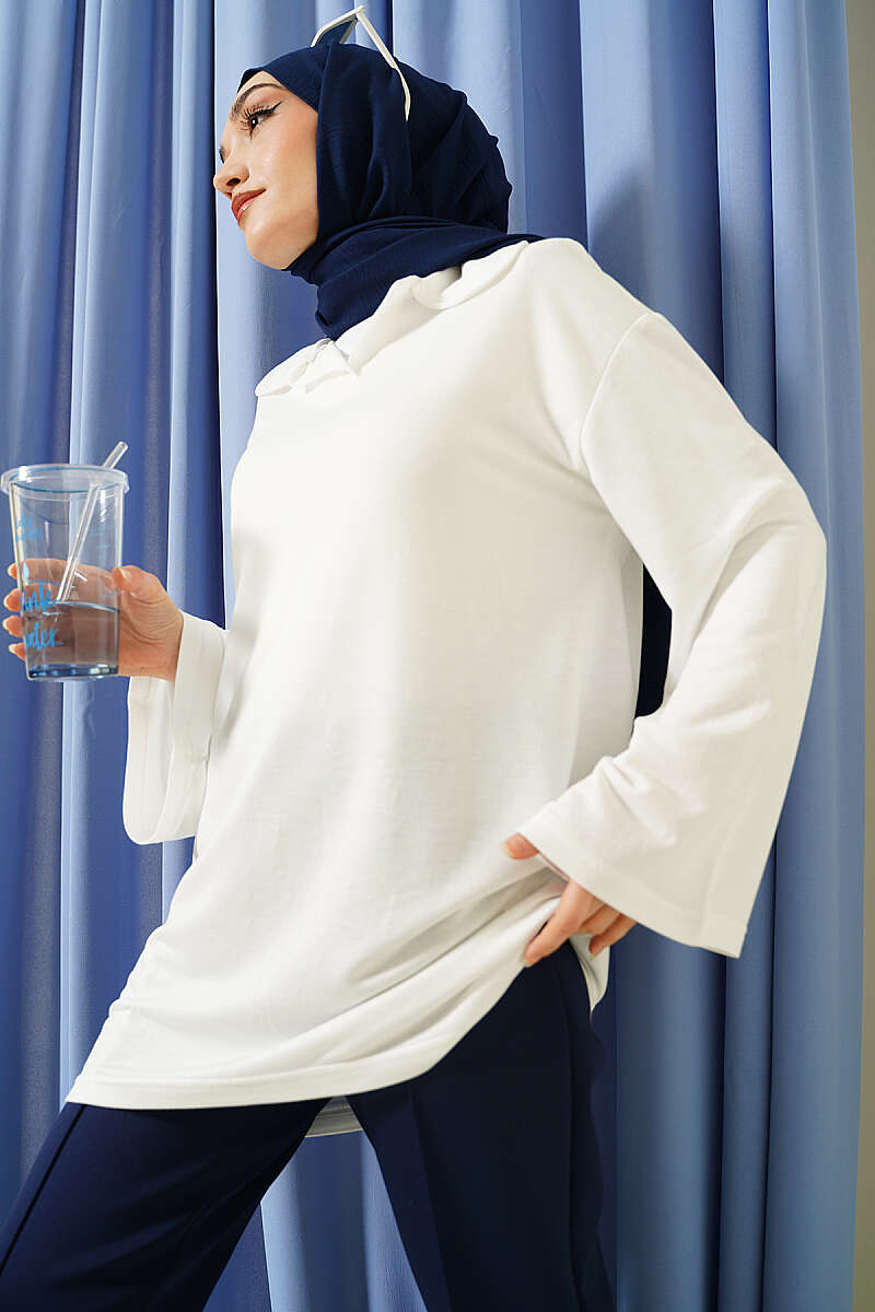 Kat Kat Detaylı Büzgülü Gömlek Beyaz