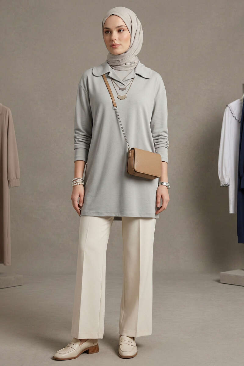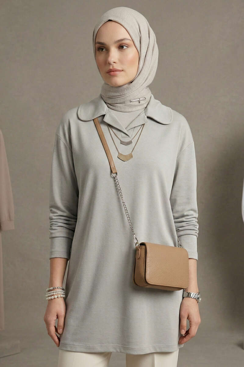 Bebe Yaka Detaylı Tunik Gri