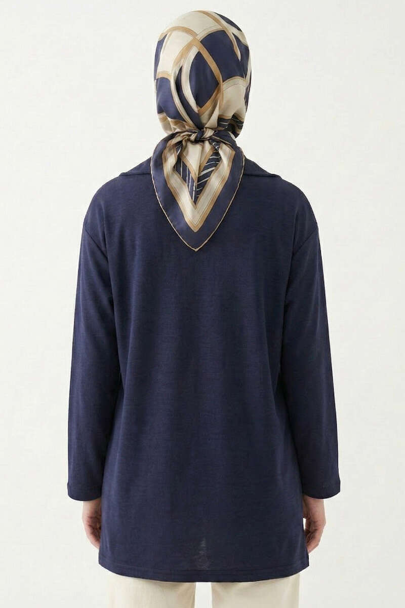 Yatay İnce Çizgili Ribanalı Tunik Saks