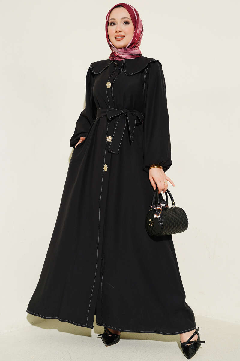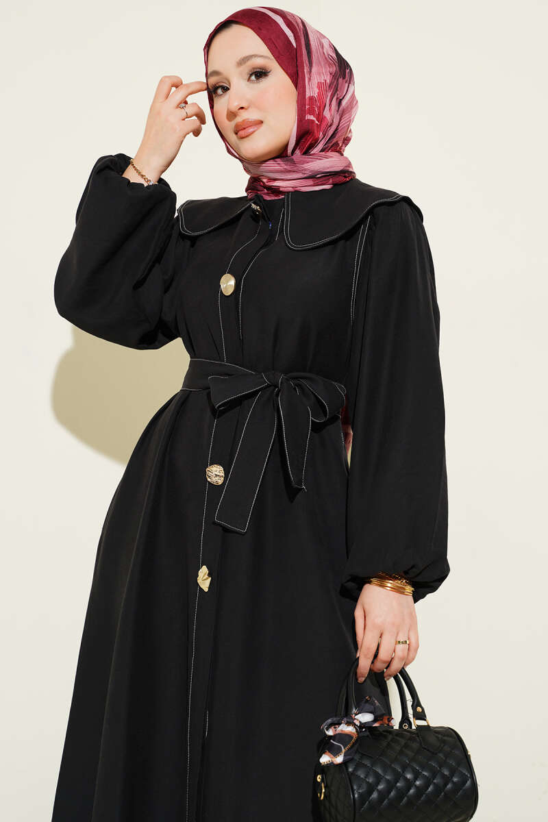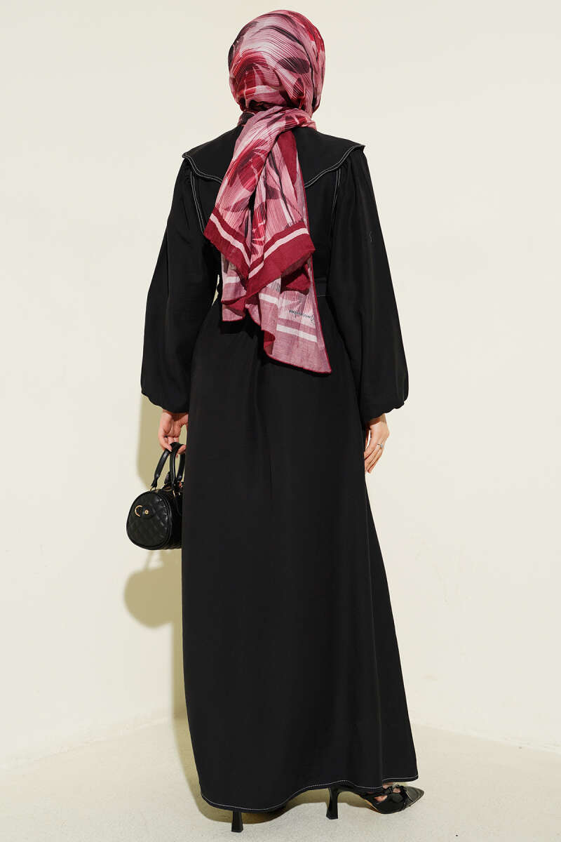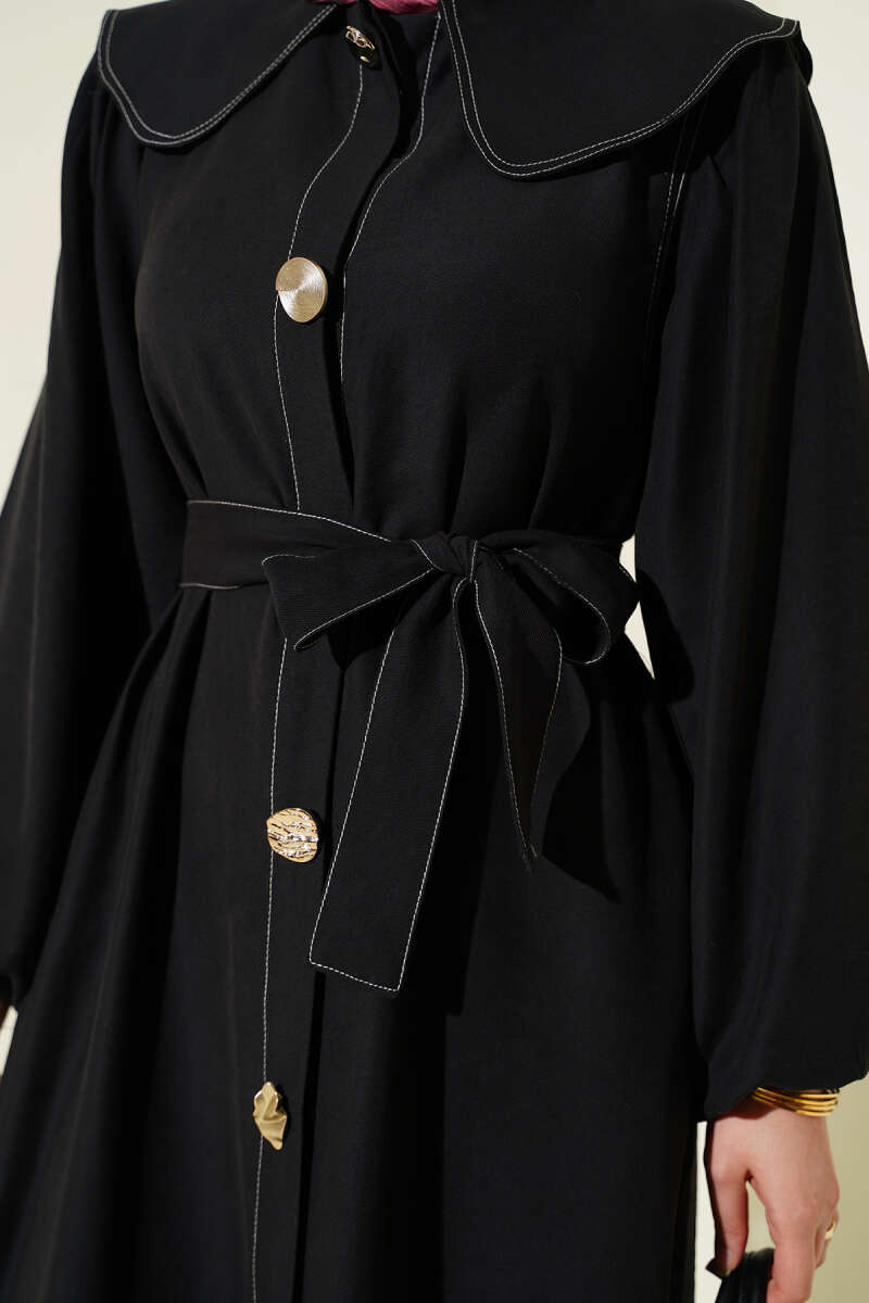 Bebe Yaka Dikiş Detaylı Elbise Siyah