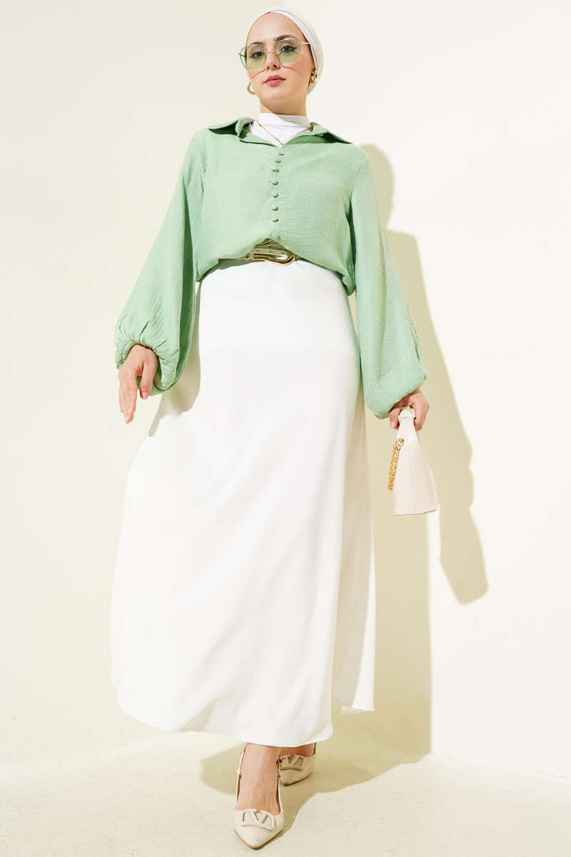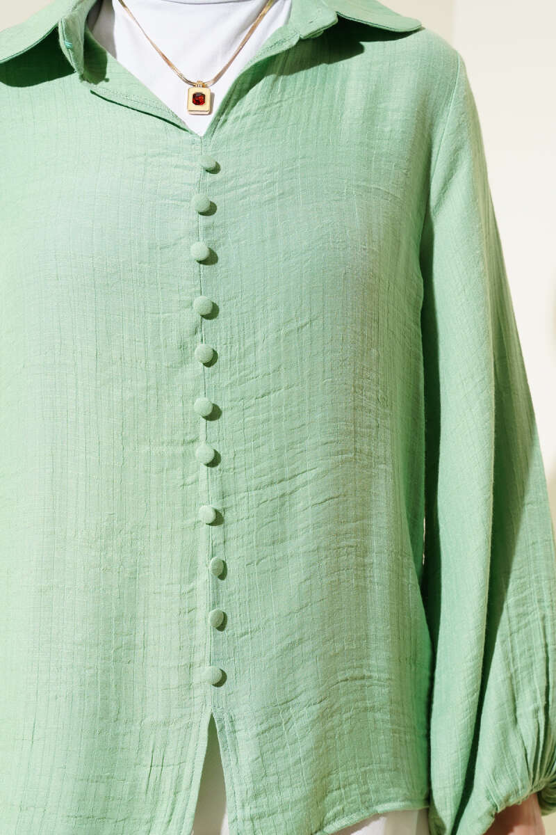 Bebe Yaka Düğme Detaylı Gofre Bluz Fıstık Yeşili