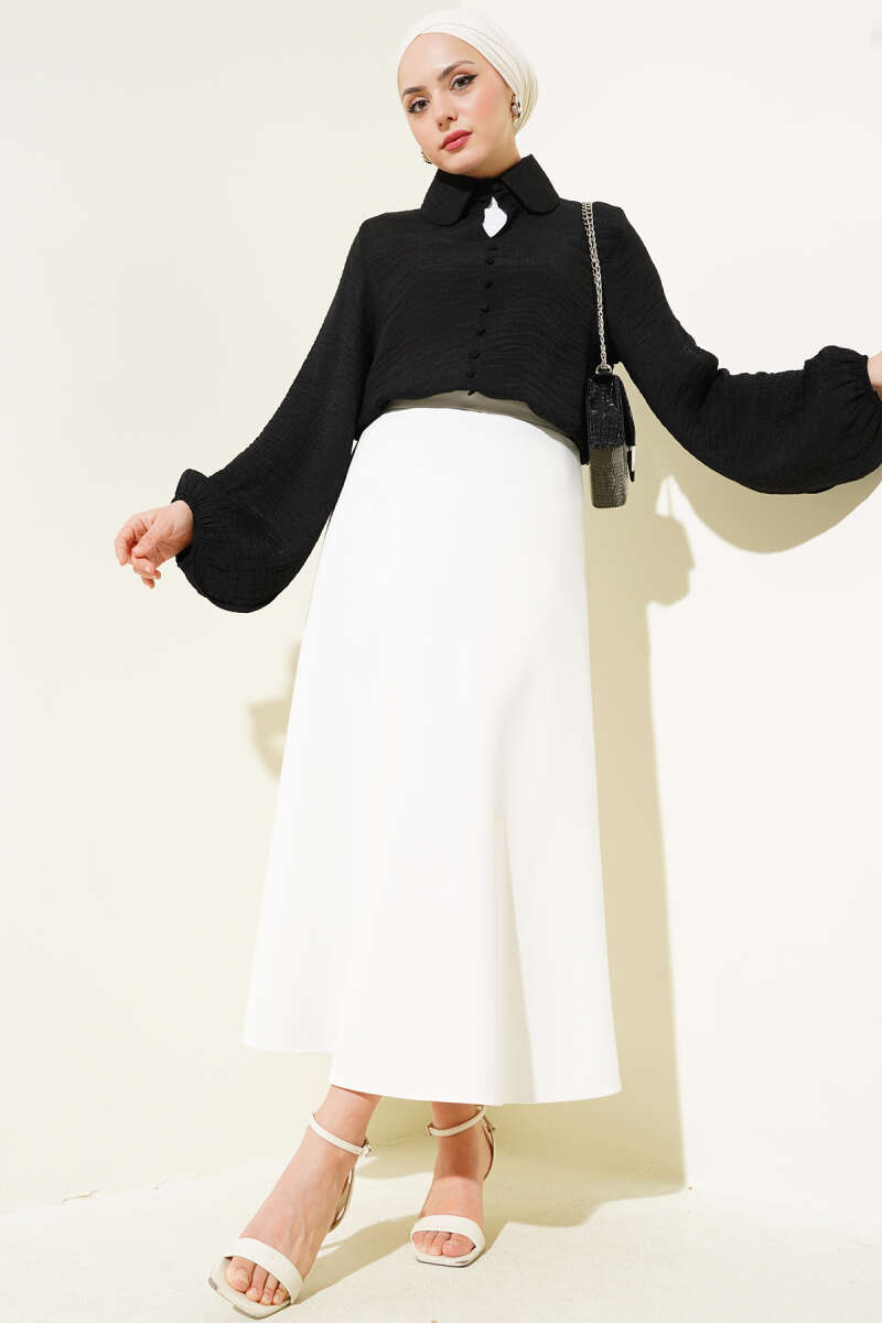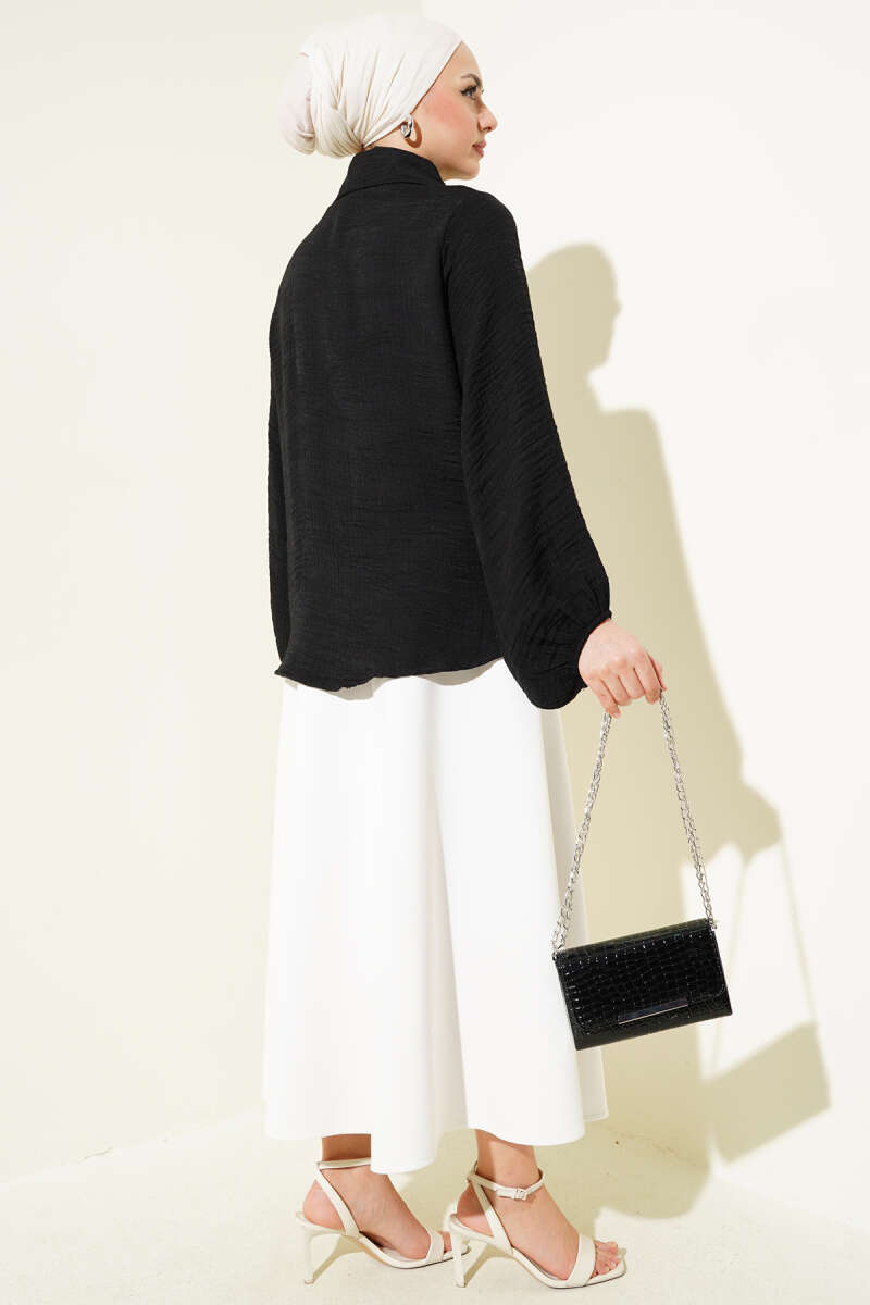 Bebe Yaka Düğme Detaylı Gofre Bluz Siyah