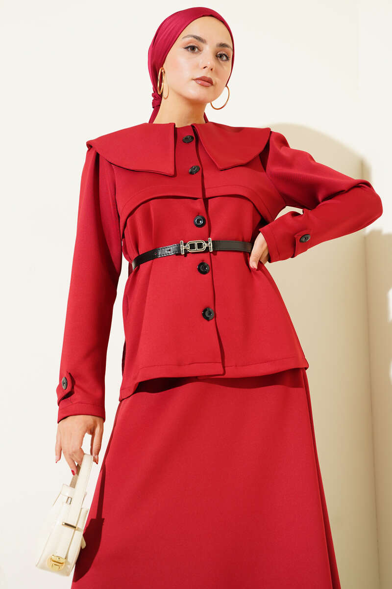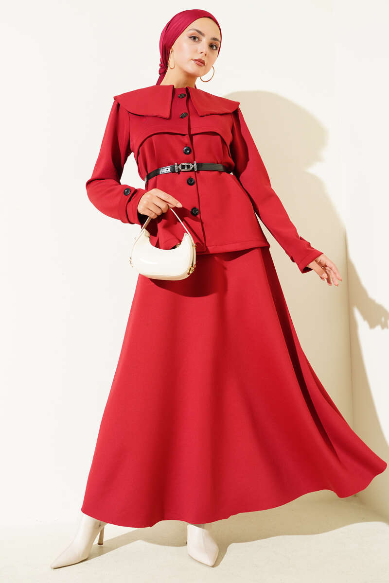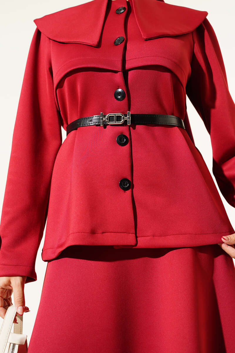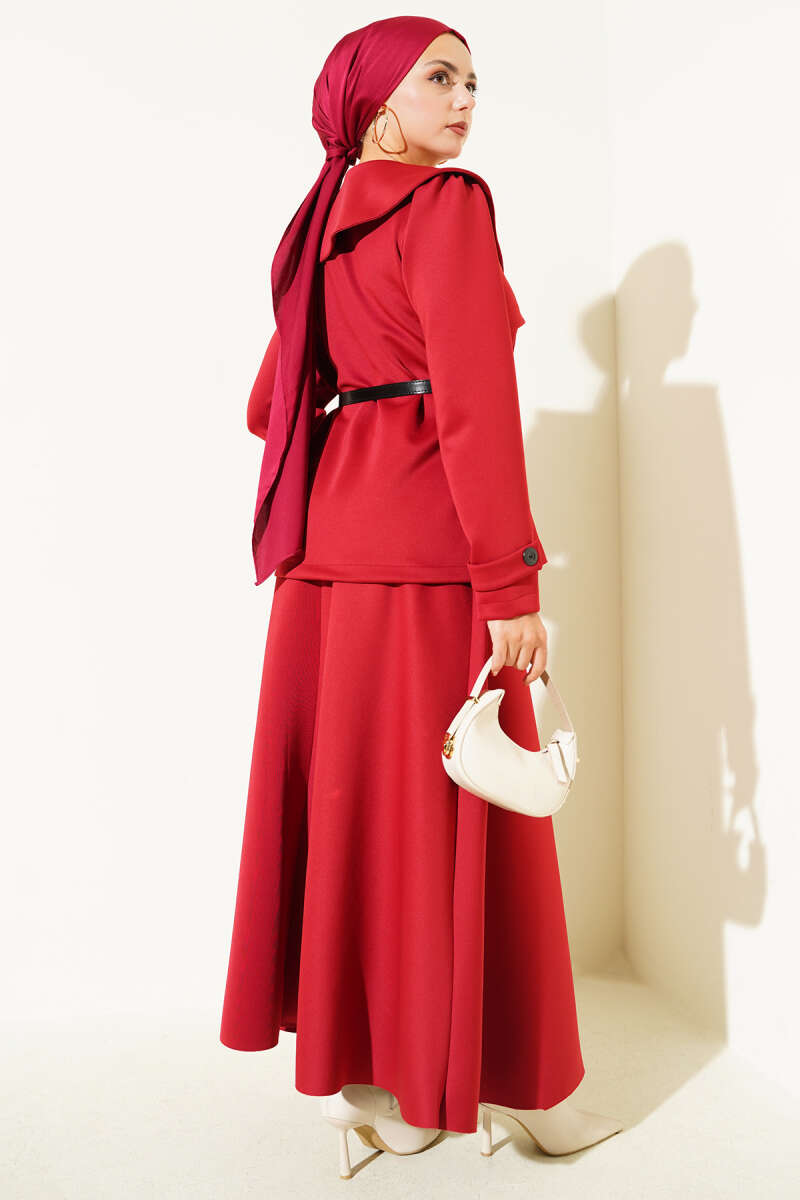 Loyşa Dikiş Detaylı İkili Takım Bordo