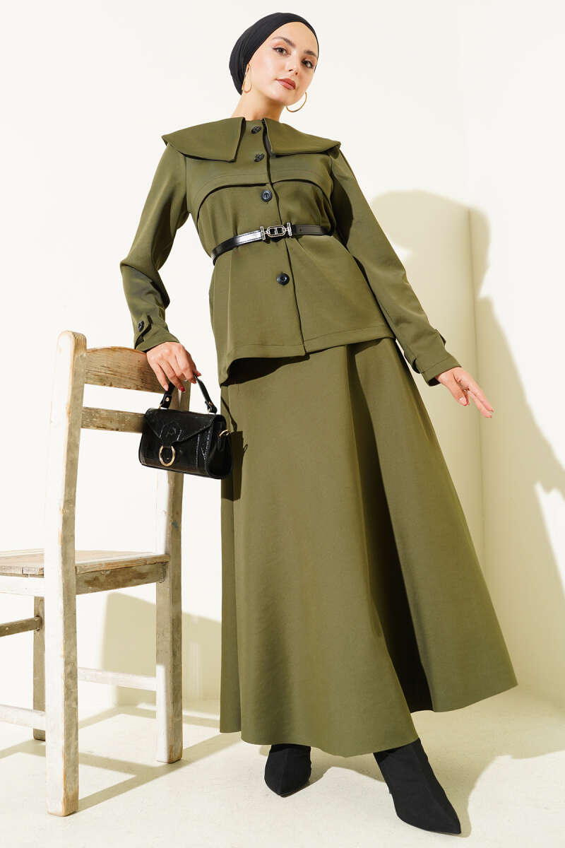 Loyşa Dikiş Detaylı İkili Takım Vizon
