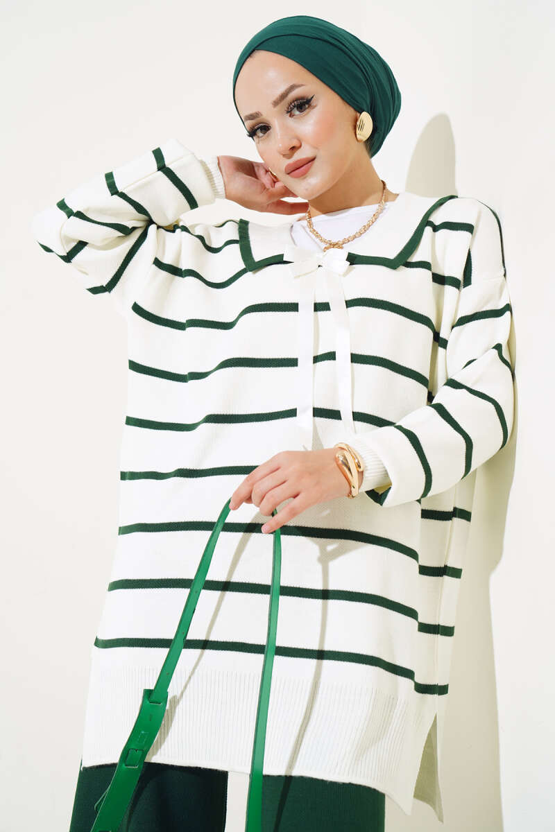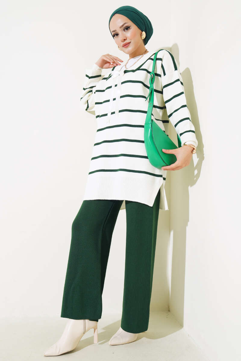 Bebe Yaka Fiyonklu Triko İkili Takım Zümrüt