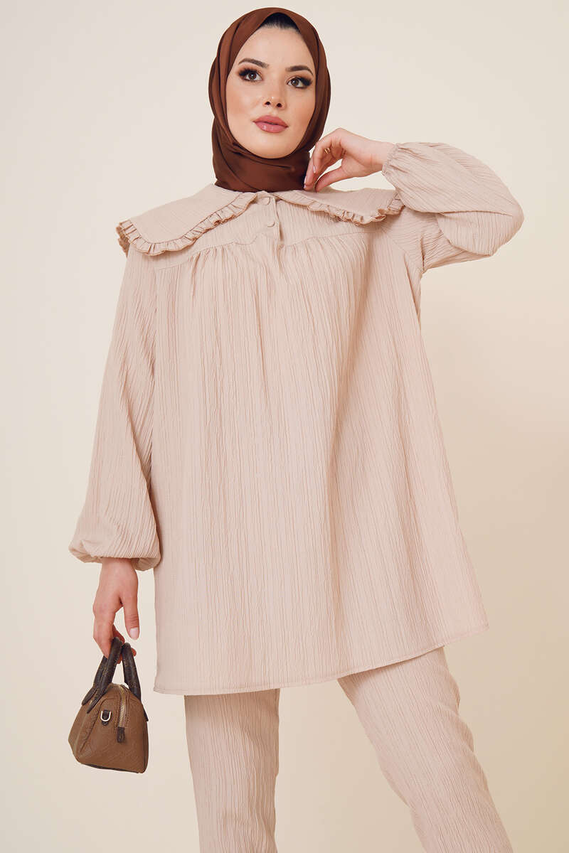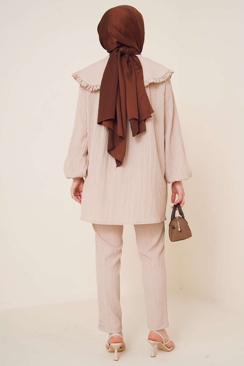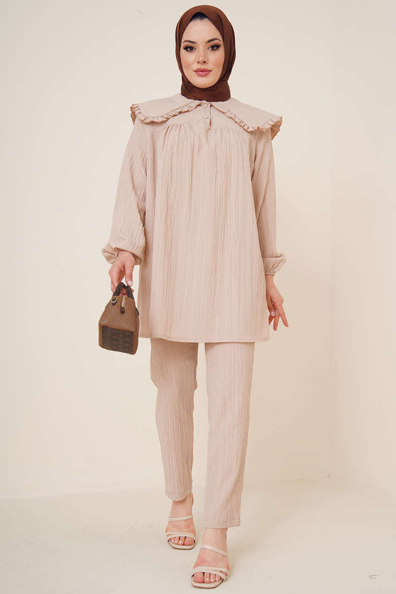 Bebe Yaka Keten Takım Bej