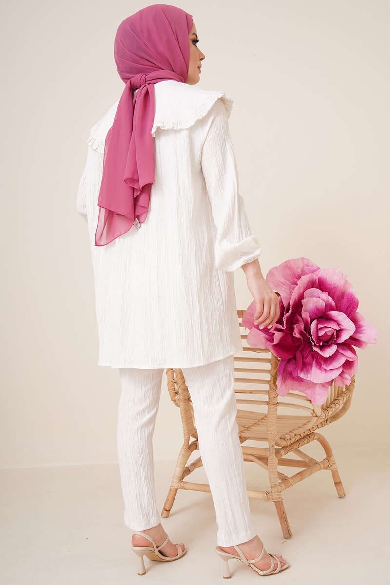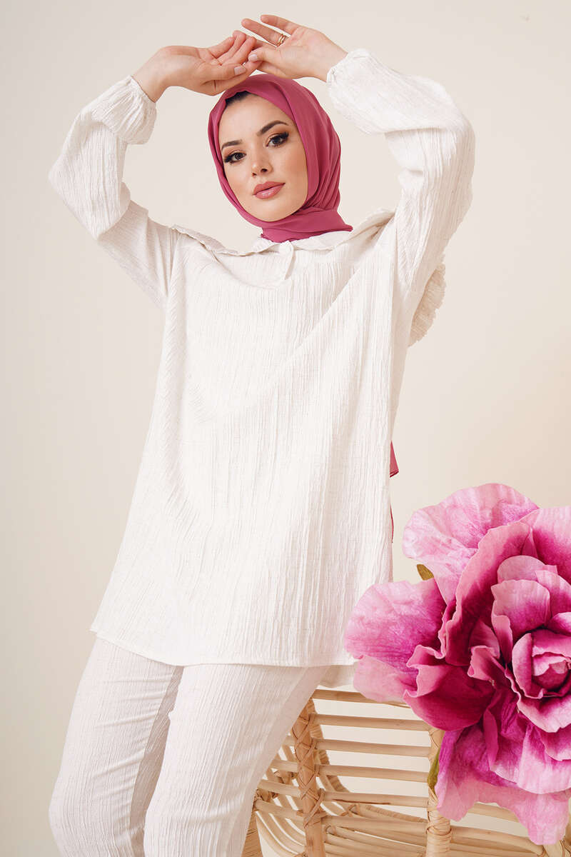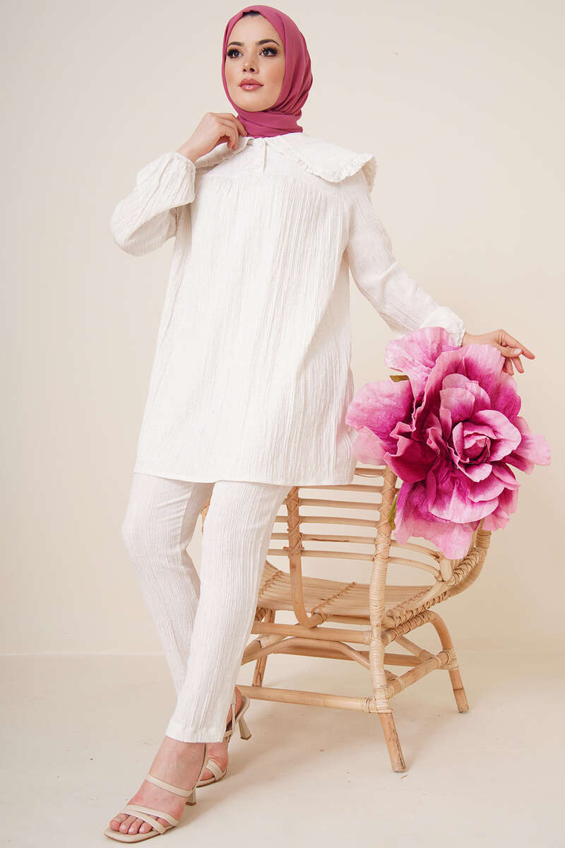Bebe Yaka Keten Takım Ekru