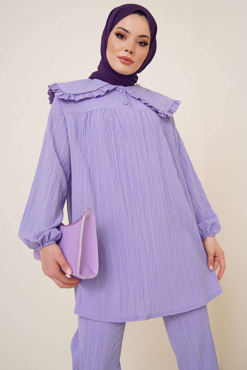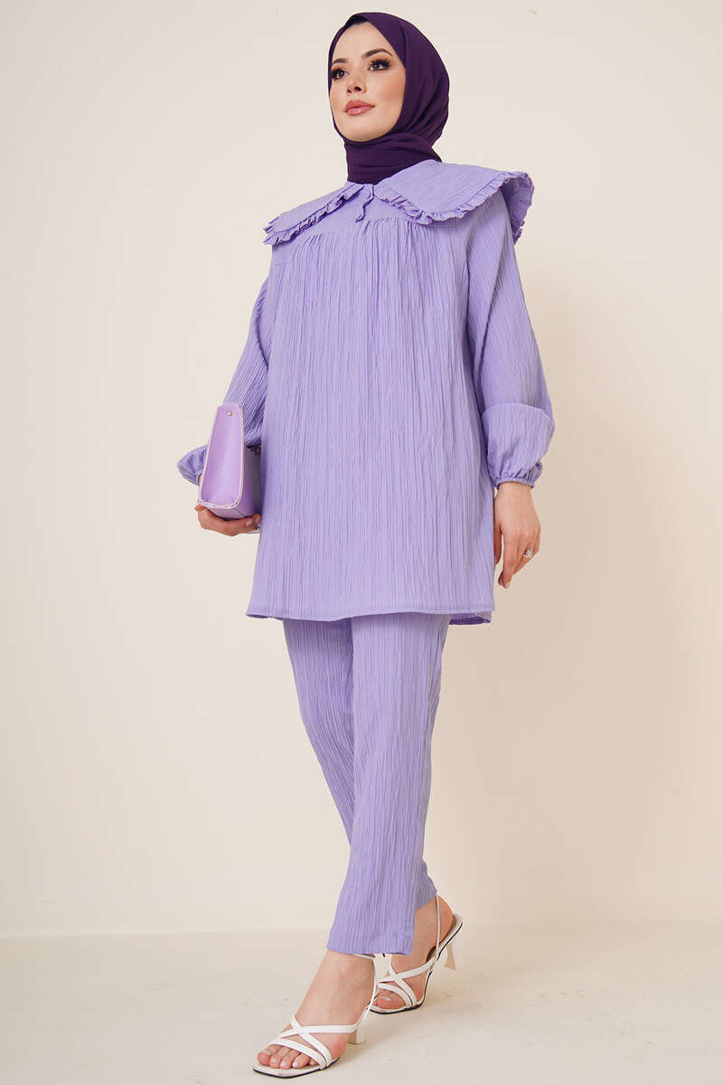 Bebe Yaka Keten Takım Lila