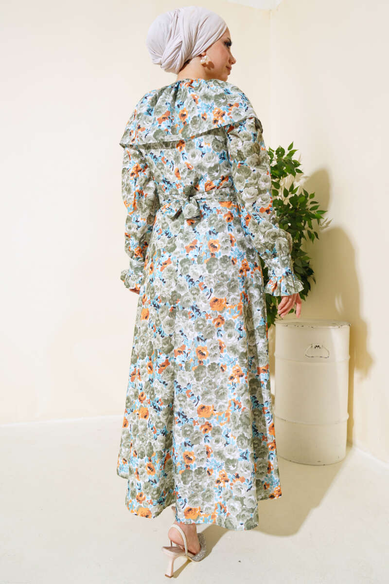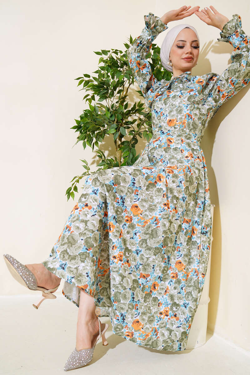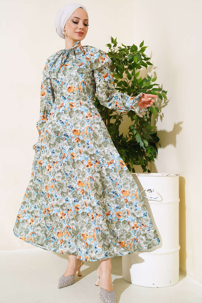 Bebe Yaka Kuşaklı Elbise Yeşil