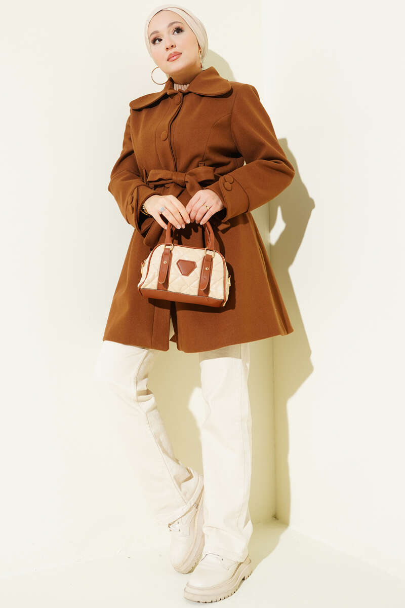 Balon Kol Kuşaklı Kısa Kaban Camel