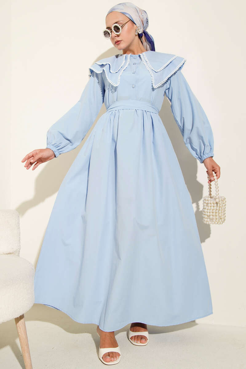 Çiçek Motifli Tül Pelerinli Abiye Elbise Bebe Mavi