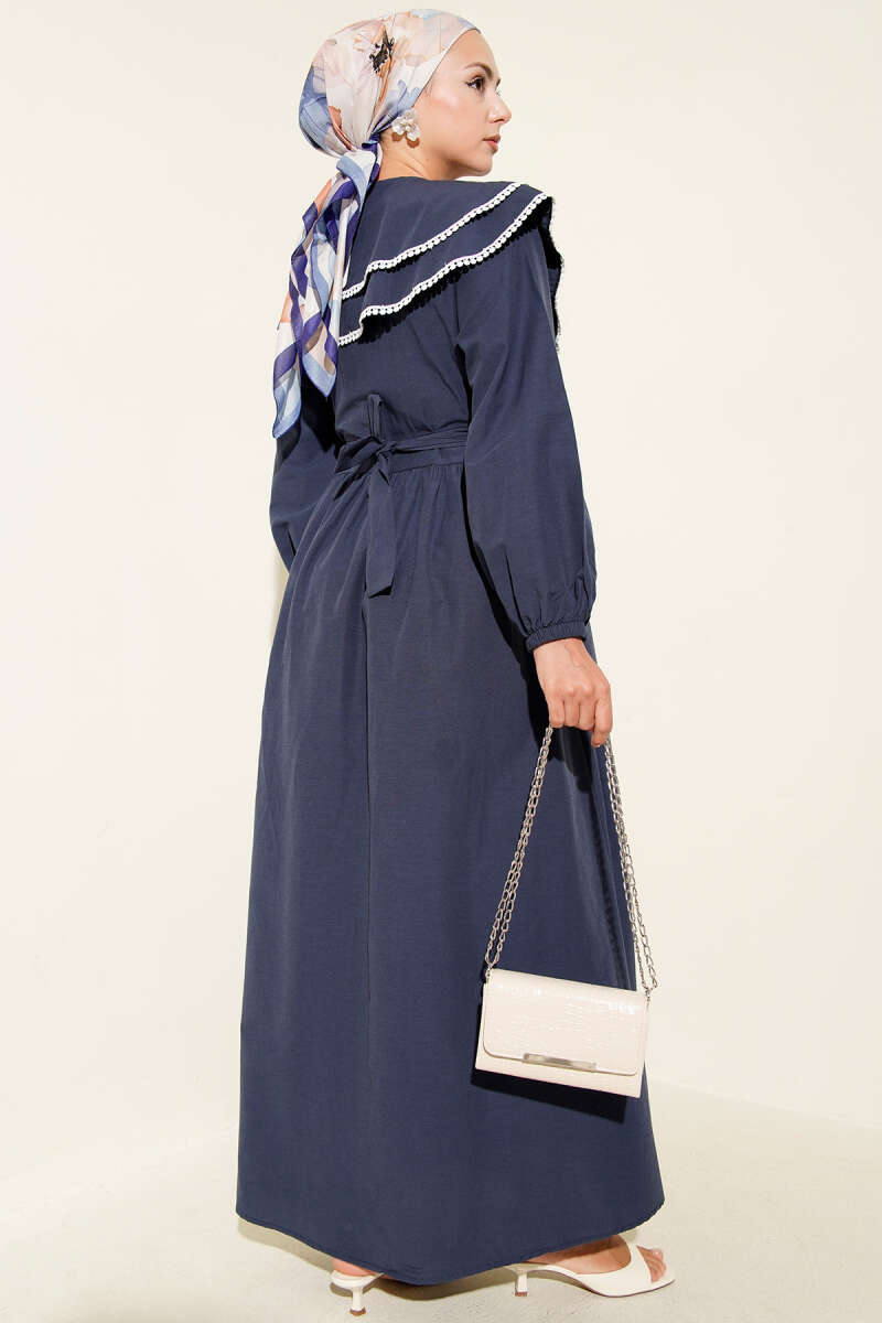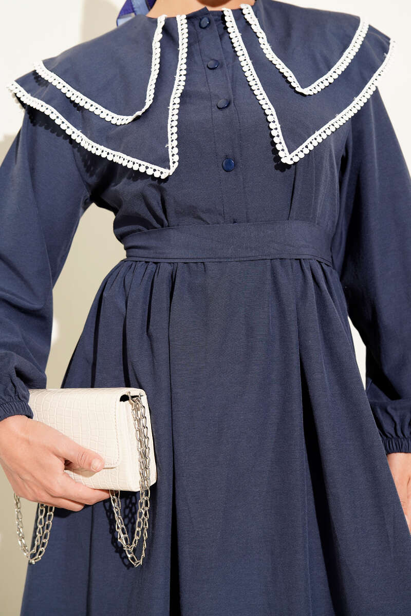 Bilek Bağlamalı Kuşaklı Abiye Elbise Lacivert
