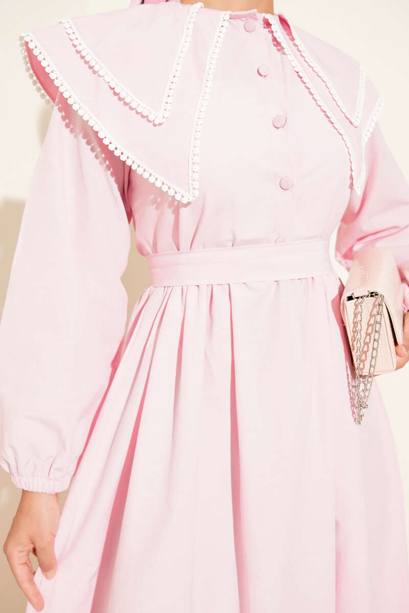Düğmeli Güpürlü Elbise Füme