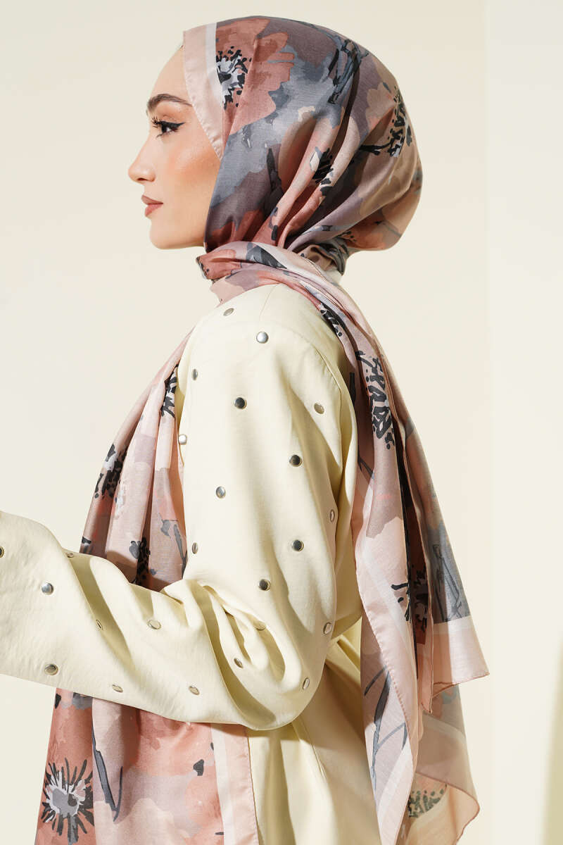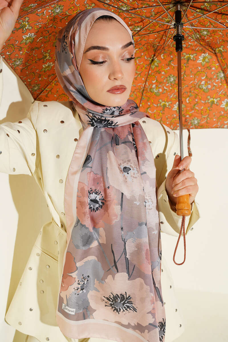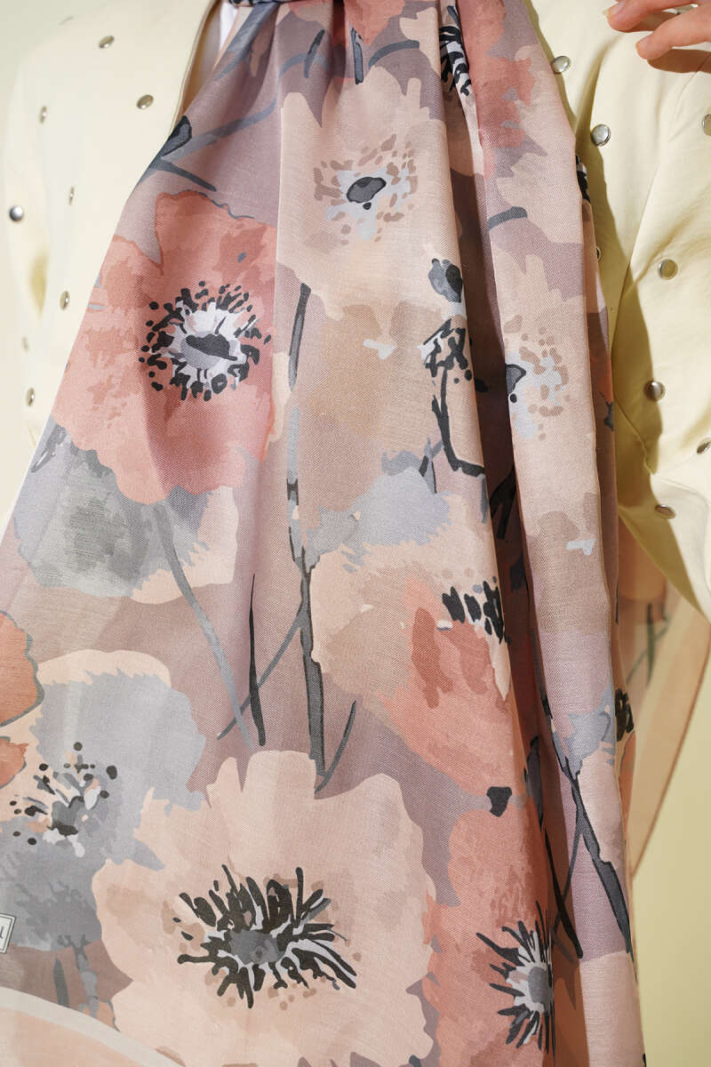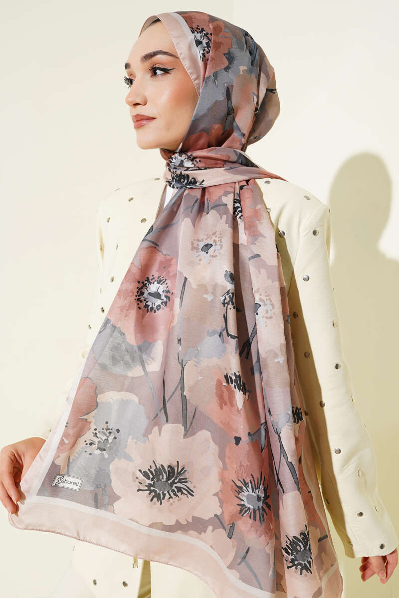 Otantik Desenli Çiçekli Şal Acı Kahve