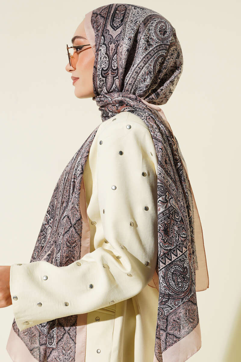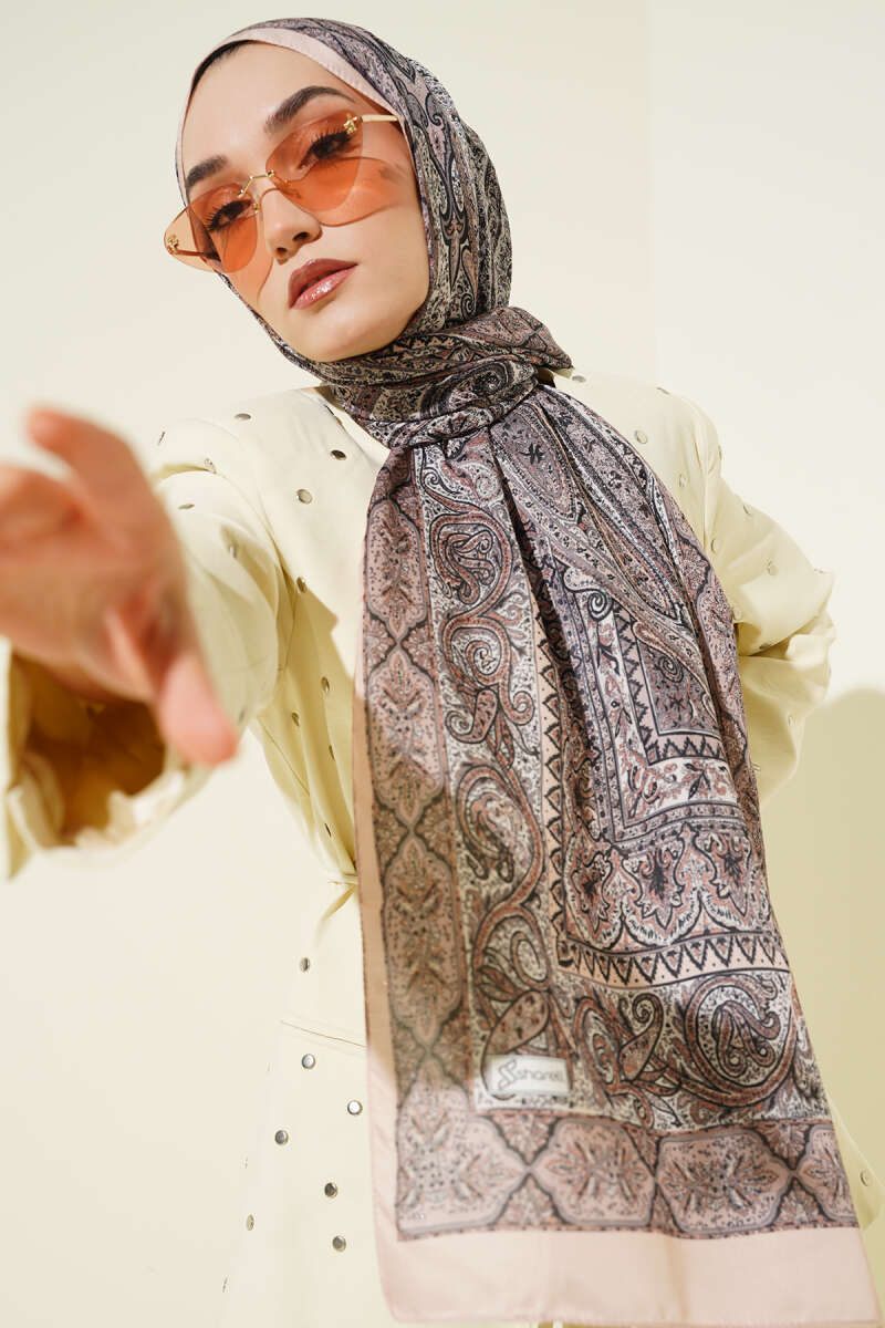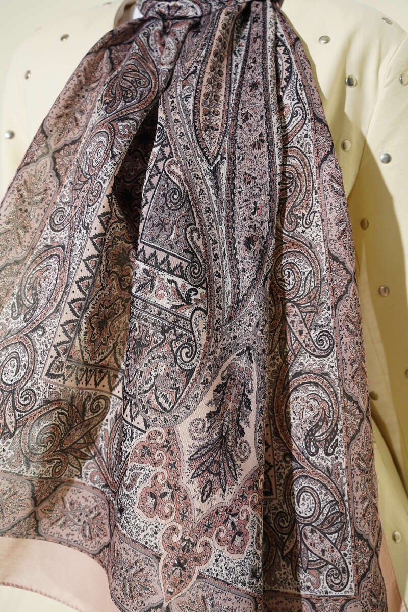 Otantik Desenli Çiçekli Şal Acı Kahve