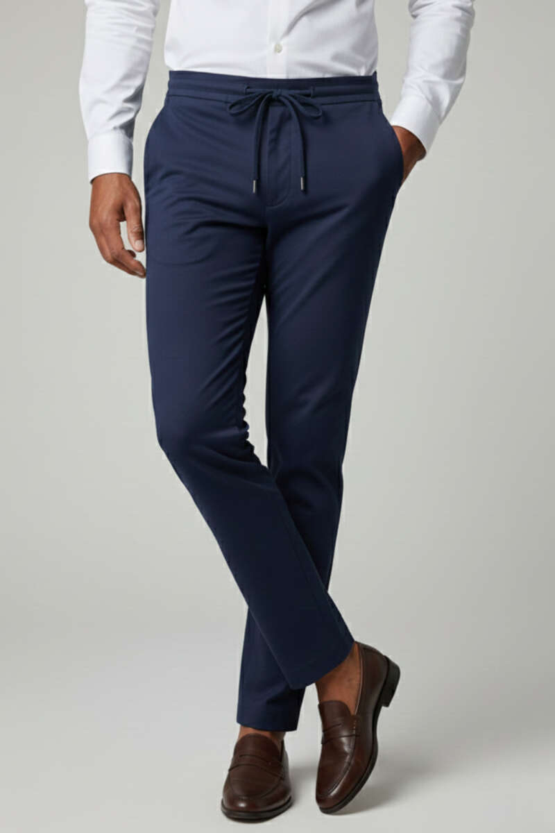 Beli Lastikli Bağlamalı Erkek Pantolon Lacivert
