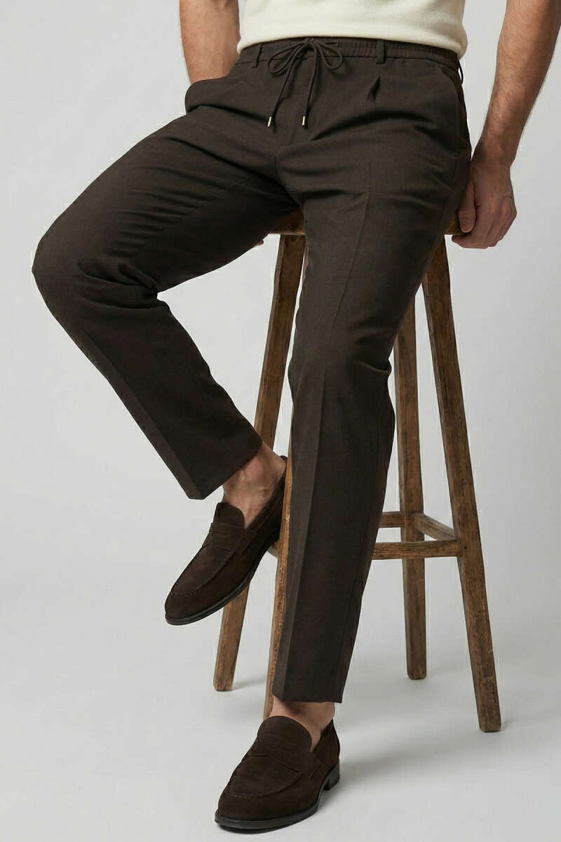Beli Lastikli Bağlamalı Erkek Pantolon Lacivert
