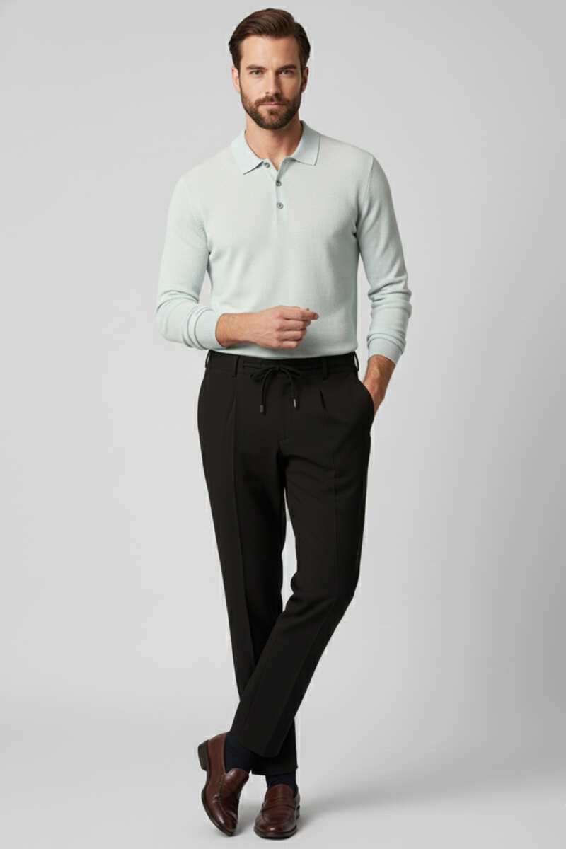 Beli Lastikli Bağlamalı Erkek Pantolon Lacivert