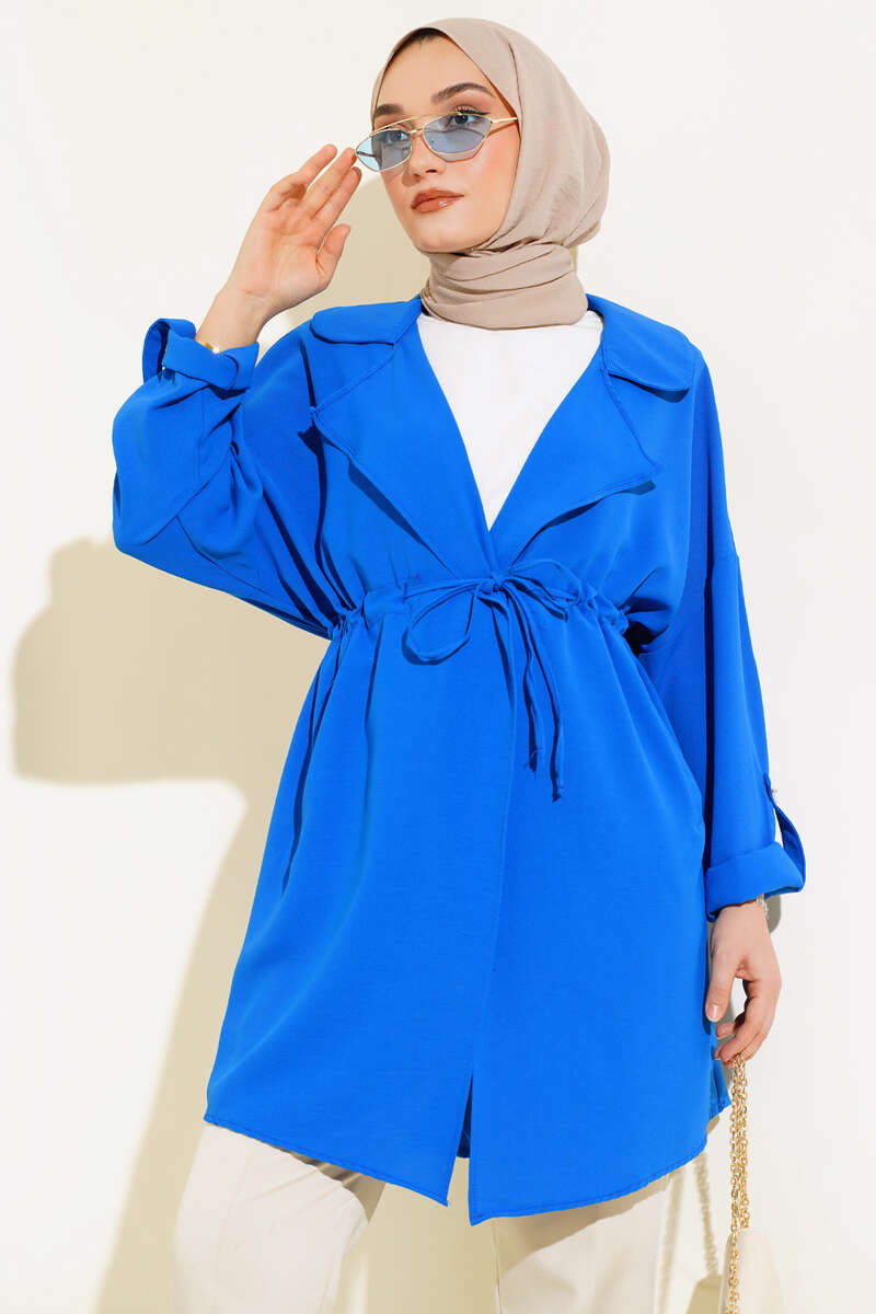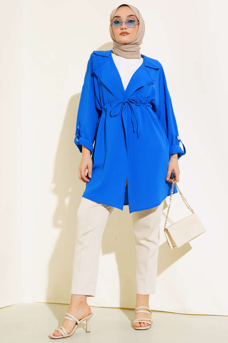 Yeni sezon kap modelimiz sizlerle beraber. Kap modelimiz belden tünelli olup, ip bağcıklıdır. Kruvaze yakadır.  İki adet cebi mevcuttur. Kap modelimiz kolları katlamalıdır. Düşük omuzdur. Renk seçenekleri olan kapımız dolabınızda yerini beklemektedir.