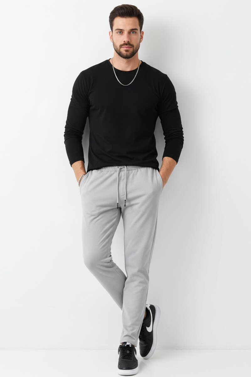 Önü Dikişli Bel Lastikli Erkek Eşofman Altı Bej