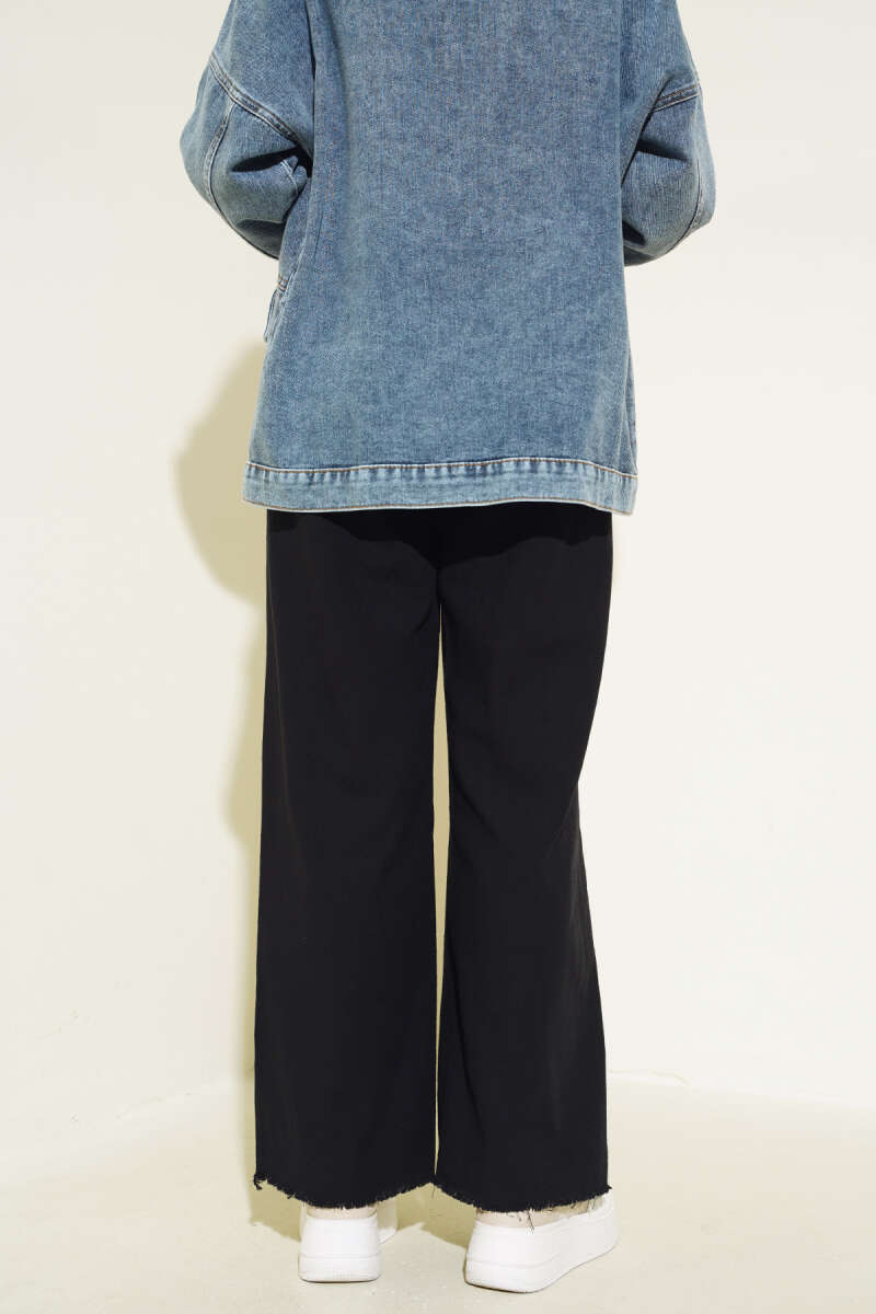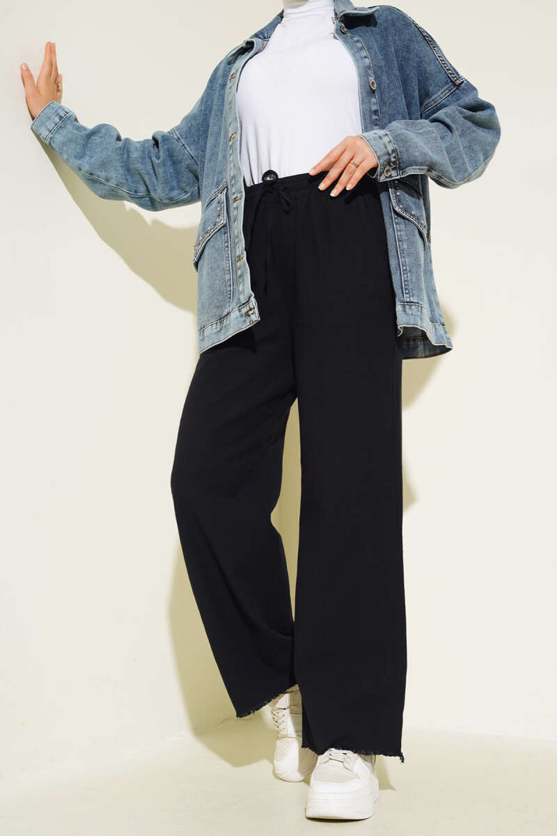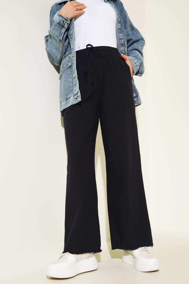 Bel Bağcıklı Paça Püsküllü Pantolon Siyah