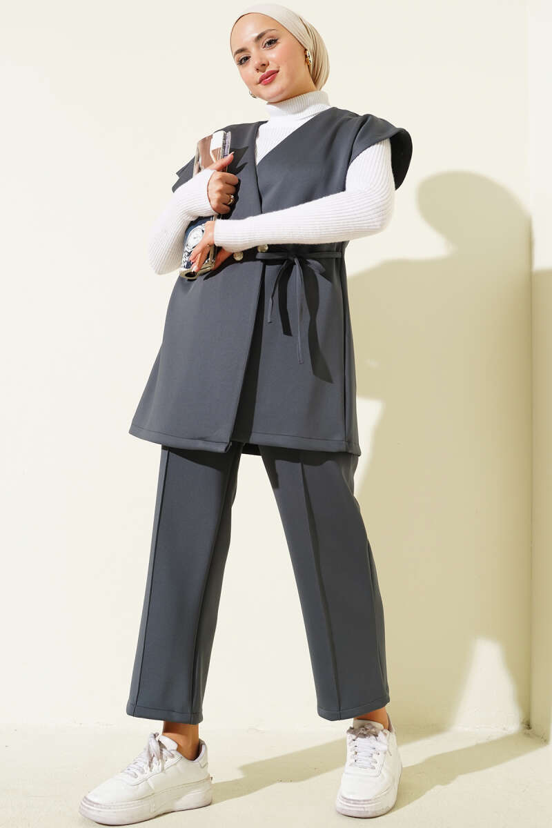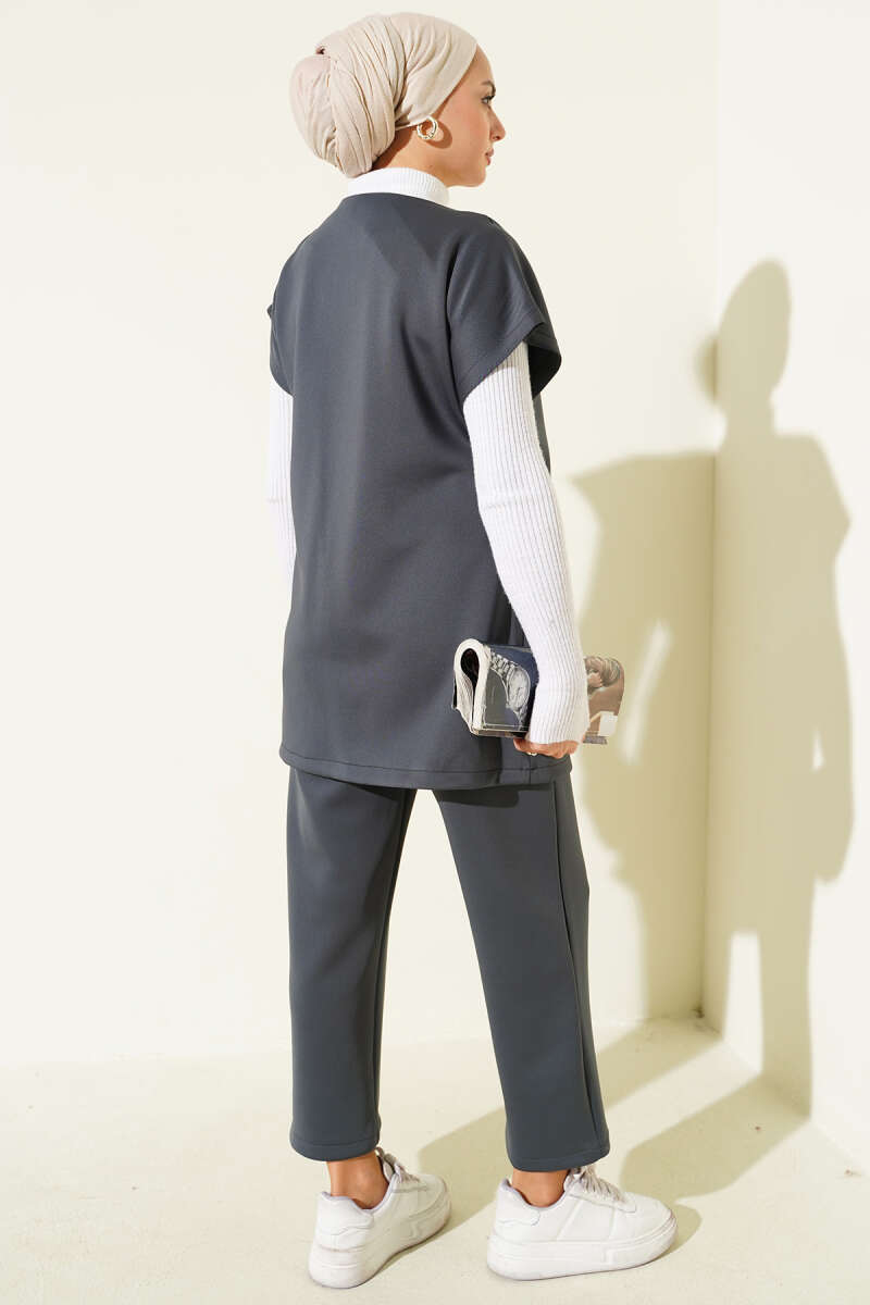 Loyşa Cepli Uzun Tunik İkili Takım Mürdüm