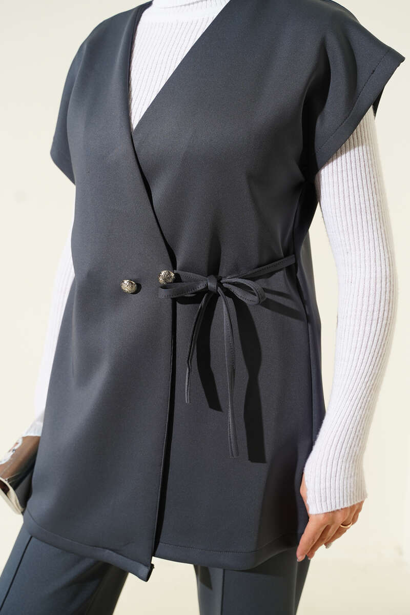Gold Düğmeli Kuşaklı Kaşe Kaban Ekru