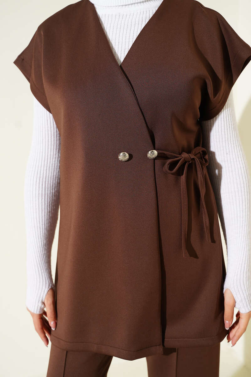 Pelerinli İp Bağcıklı İkili Takım Bej