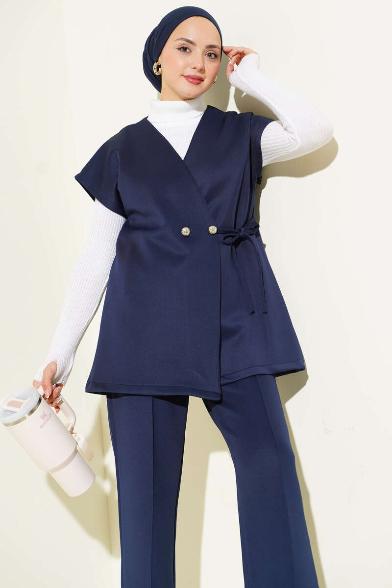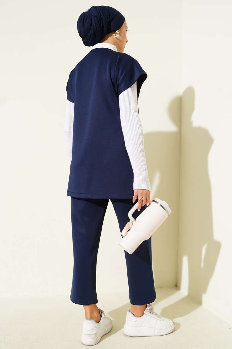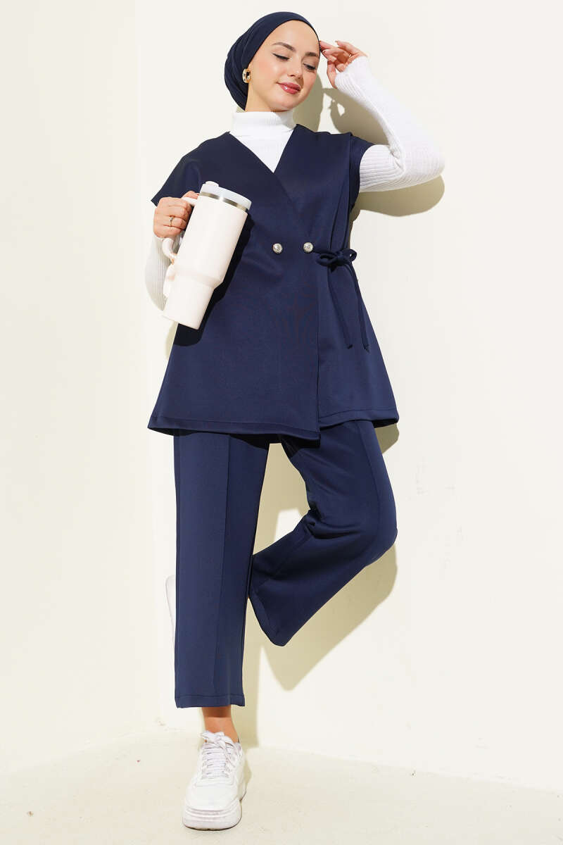 Çıt Çıt Düğmeli Scuba Kumaş İkili Takım Koyu Lacivert