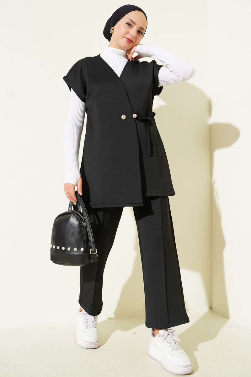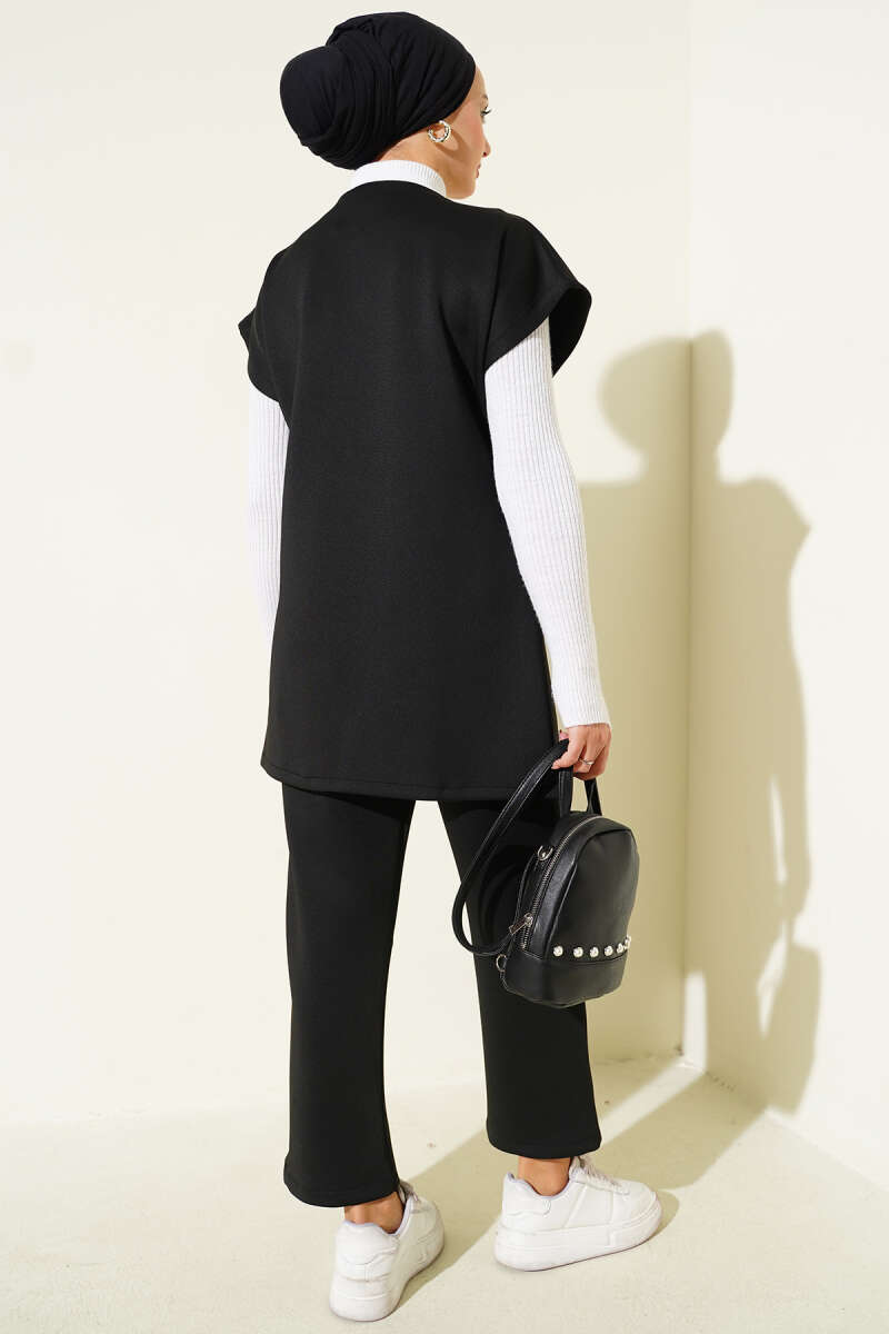 Kol Tüllü Fermuarlı Scuba İkili Takım Siyah