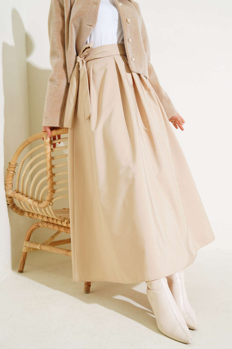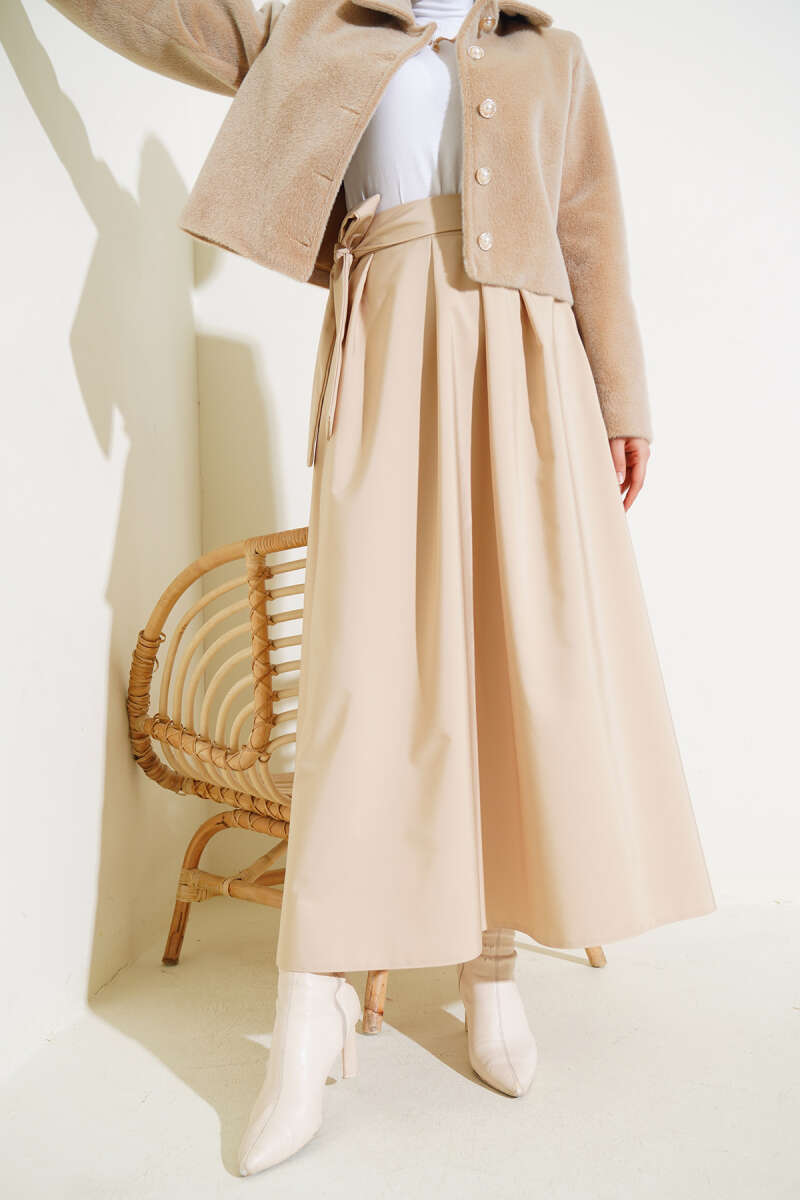 Yan İp Bağcıklı Scuba Etek Beyaz