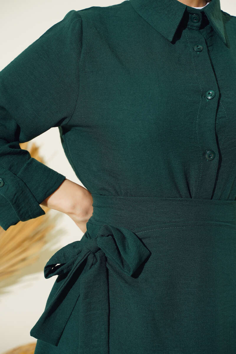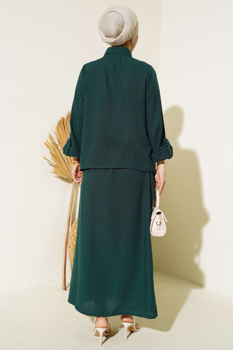 Önü Bağcık Detaylı Etekli İkili Takım Çağla Yeşili
