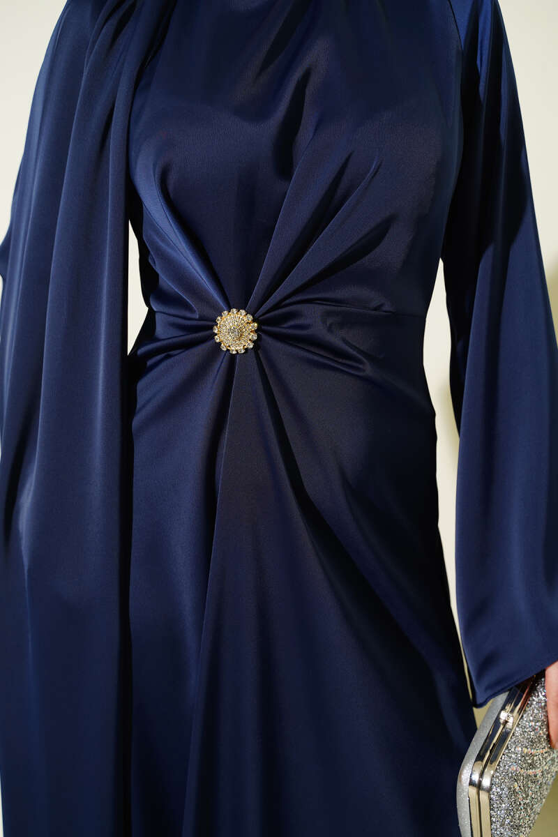 Yarım Fermuarlı Armalı Loyşa Elbise Lacivert