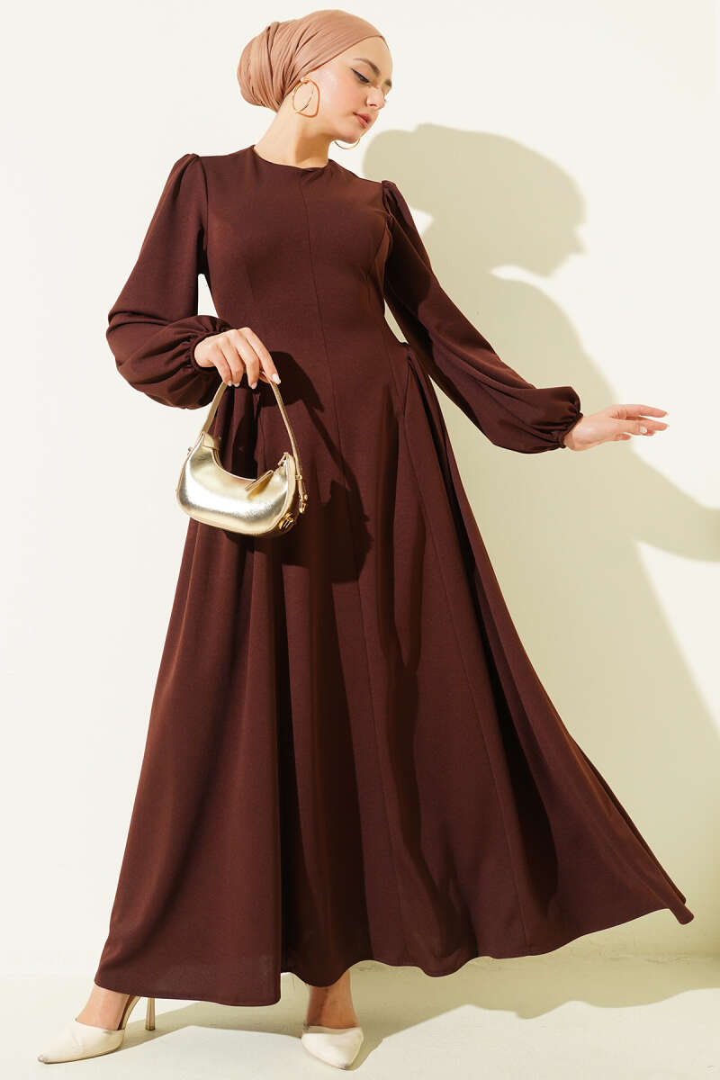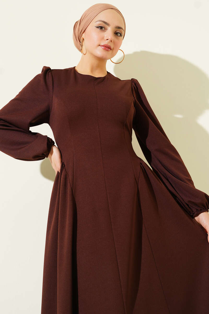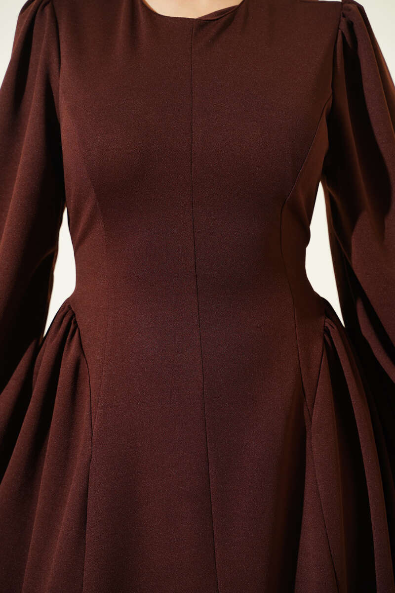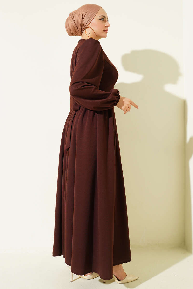 Boydan Düğmeli Kemerli Tensel Elbise Taş