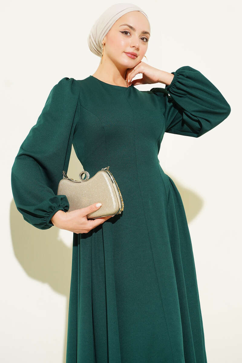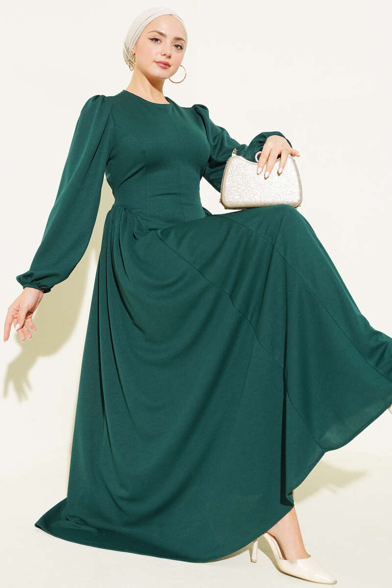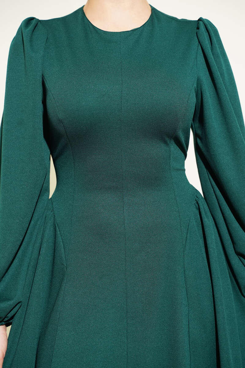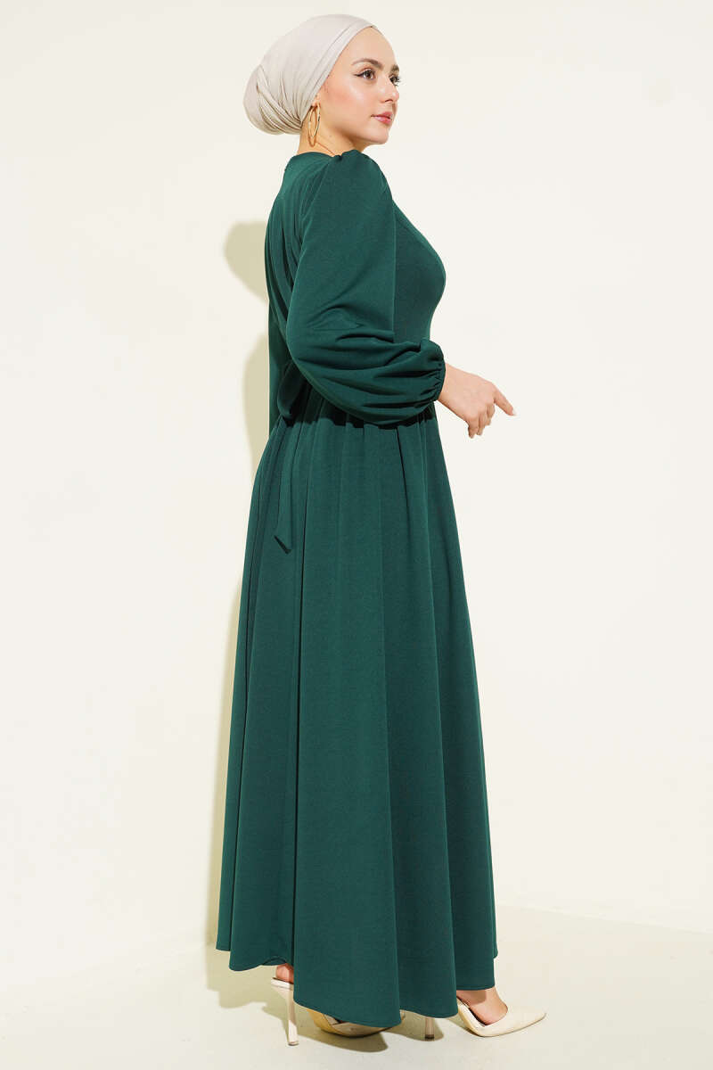 Düşük Omuzlu Beli Tül Elbise Zümrüt Yeşili