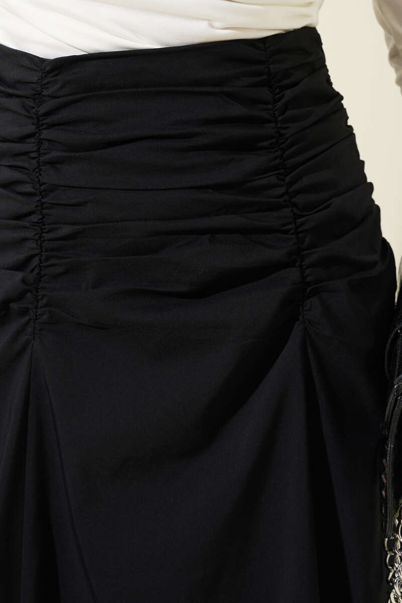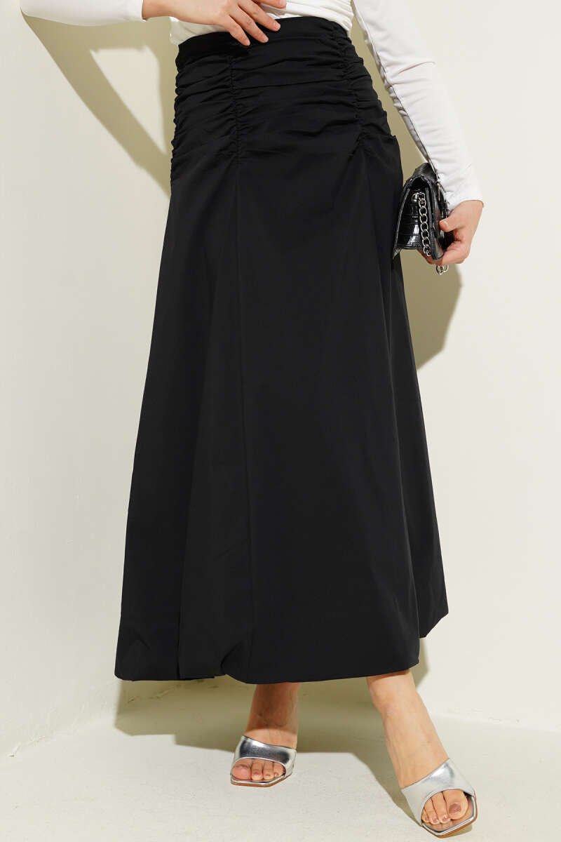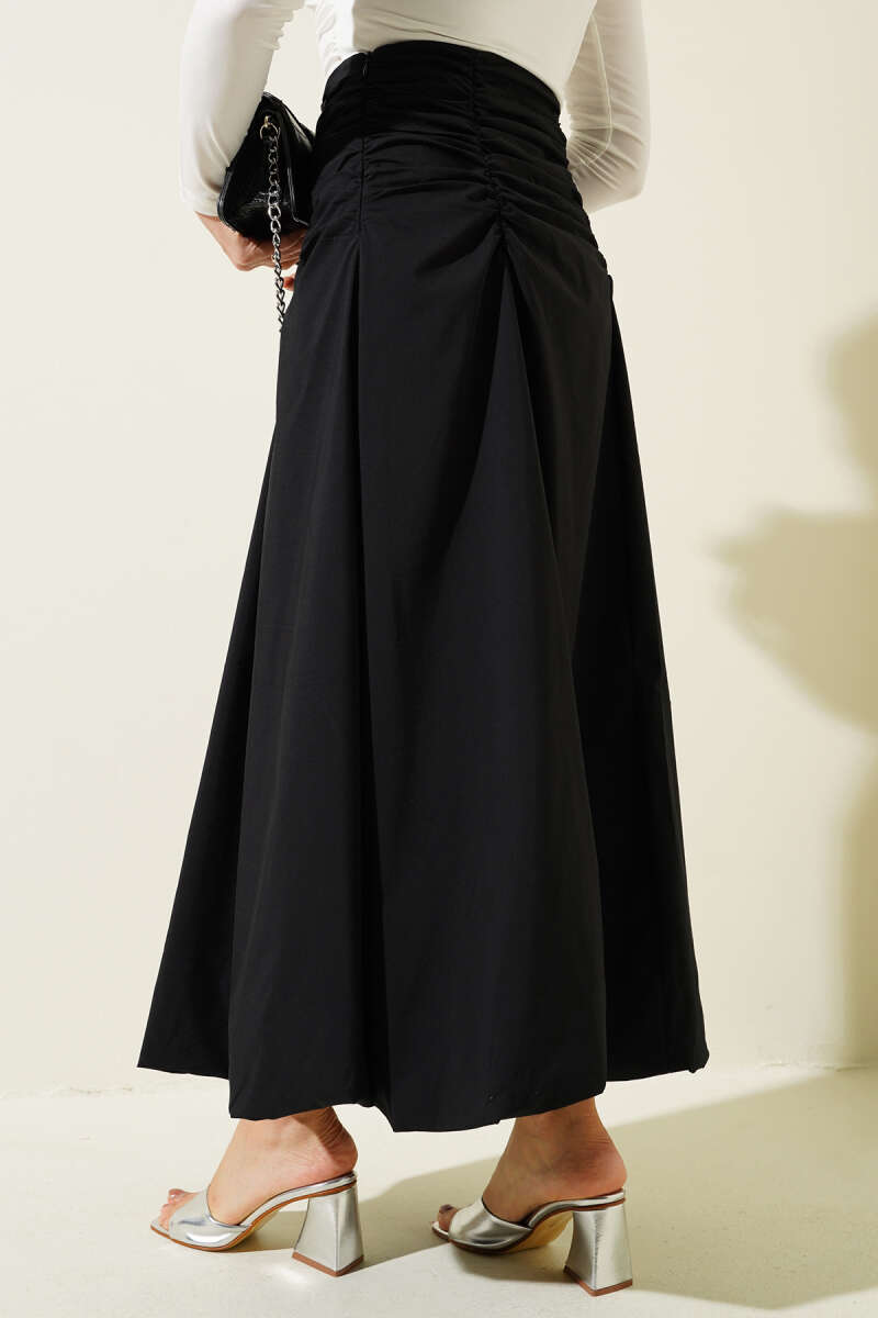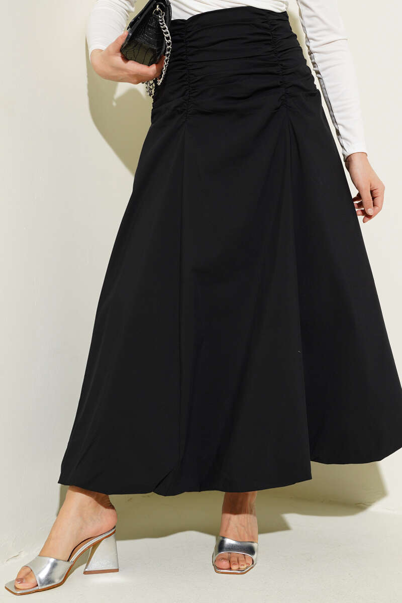Bel Büzgülü Fermuarlı Etek Siyah