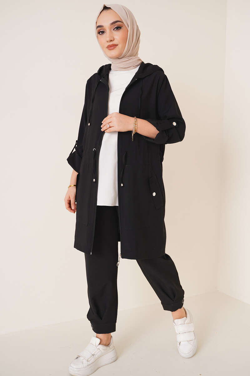 Yeni sezon hırkamız dikkat çeken tasarımıyla sizler için geldi. Hırkamızın kollarında ve cep kapaklarında çıt çıt düğme detayları bulunmaktadır. Önü fermuarlıdır. Kapüşonludur. Beli ve kapüşonu büzgülenebilir. Oldukça rahattır. Bu güzel havalarda her kıyafetinizin üstüne kombinleyebilirsiniz.