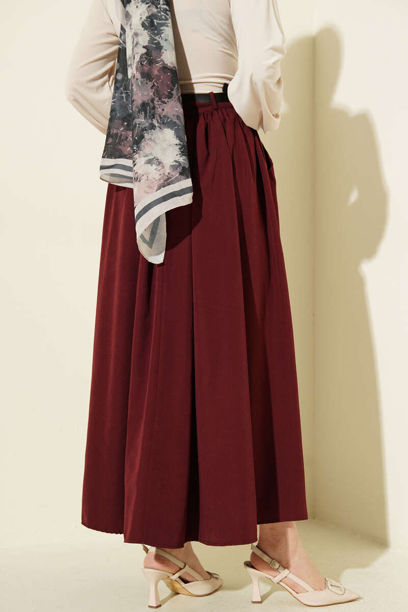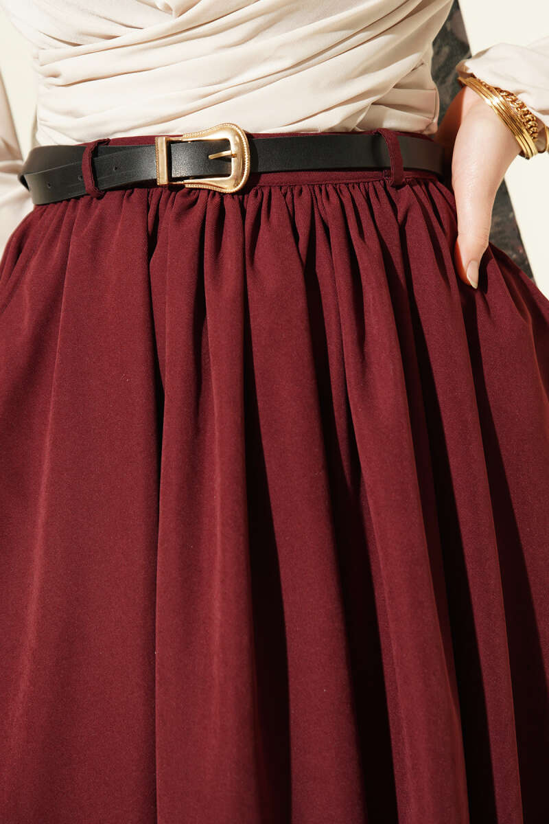 Önü Pileli Düğmeli Modal Elbise Bordo