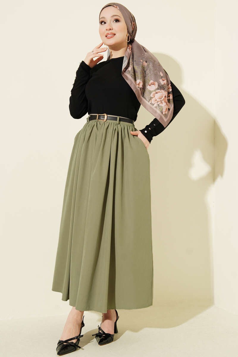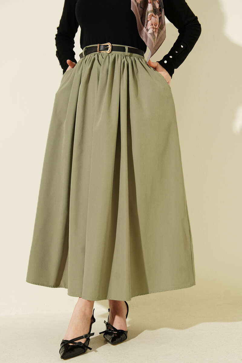 Bel Büzgülü Kemerli Cepli Etek Çağla Yeşili