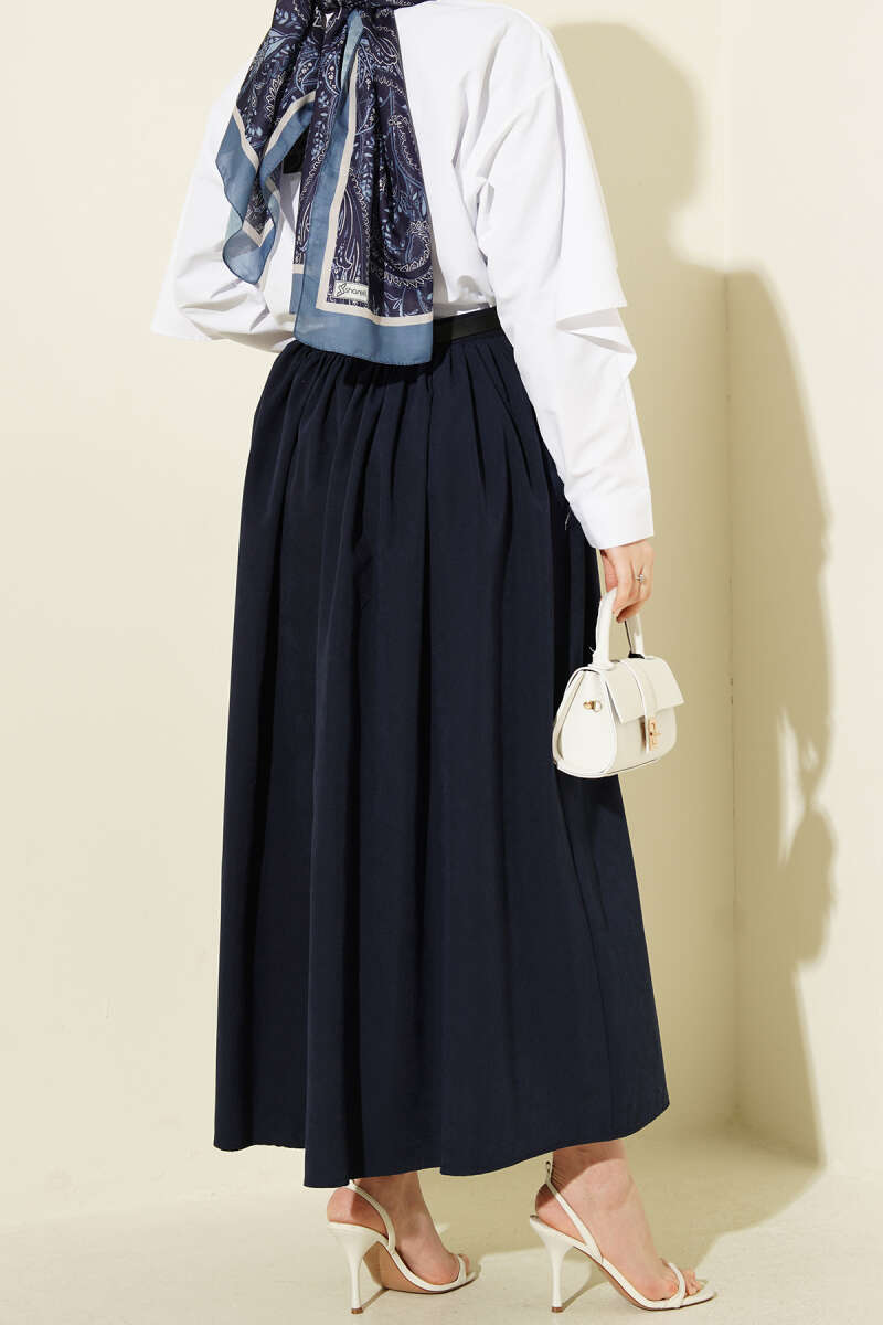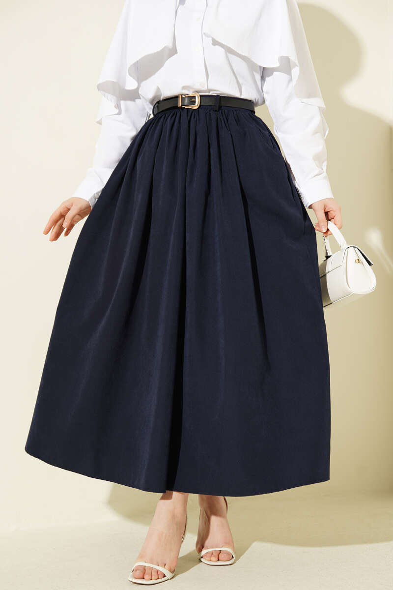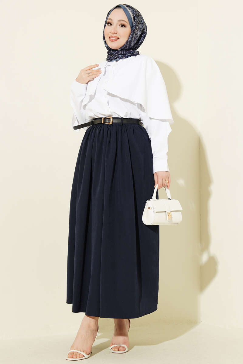 Desenli Asimetrik Kemerli Tül Etek Siyah